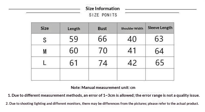 1. Asian sizes are 1 to 2 sizes smaller than European and American people. Choose the larger size if your size between two sizes. Please allow 2-3cm differences due to manual measurement. 2. Please check the size chart carefully before you buy the item, if you don't know how to choose size, please contact our customer service. 3.As you know, the different computers display colors differently, the color of the actual item may vary slightly from the following images.