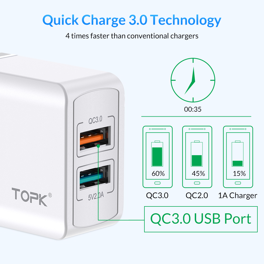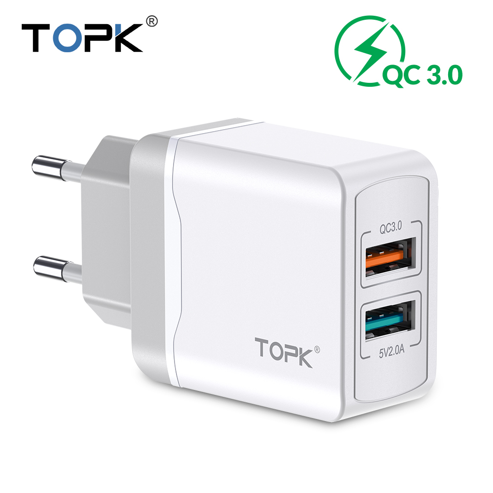 TOPK fast charge 3.0 18W QC 3.0 dual USB charger EU plug travel mobile phone charger
