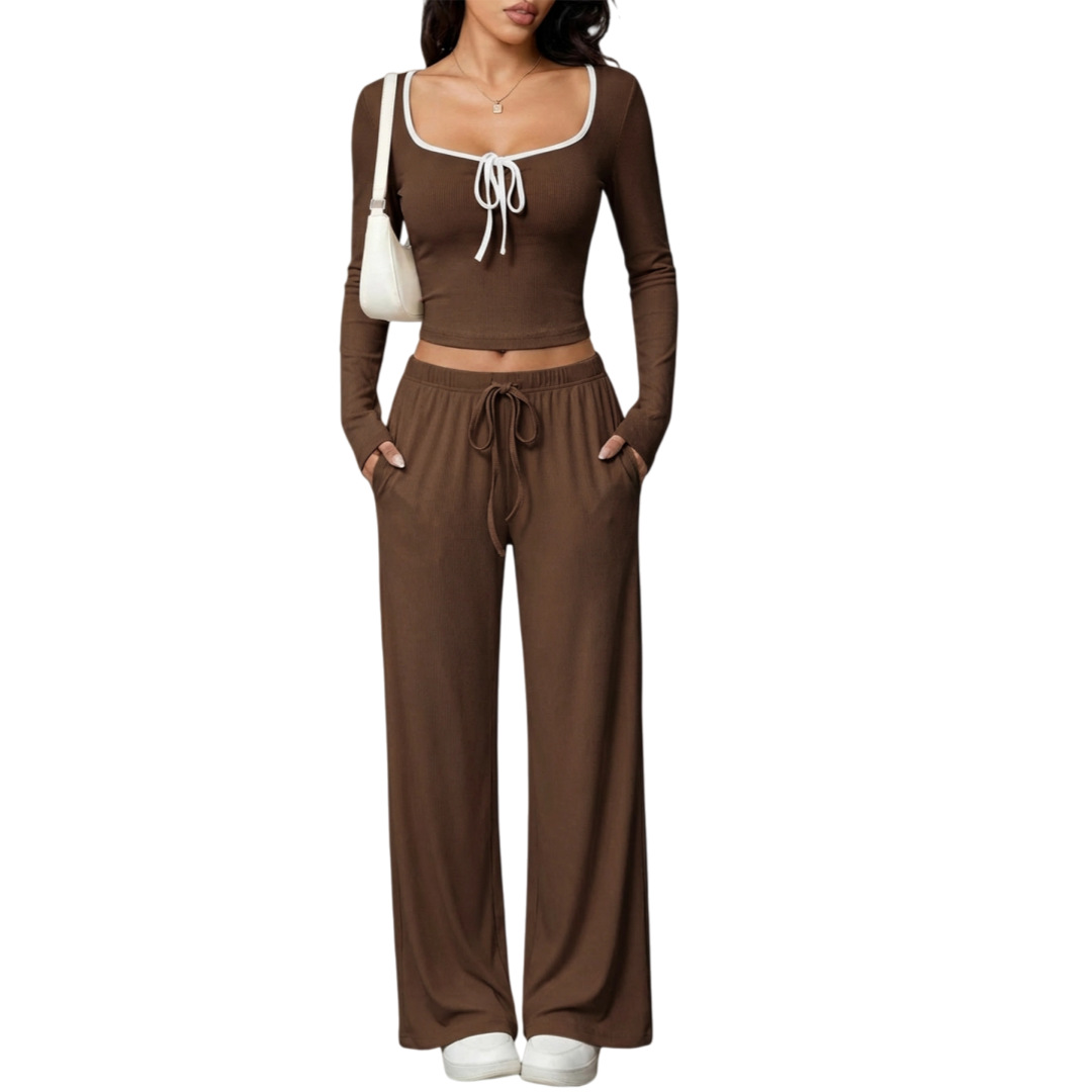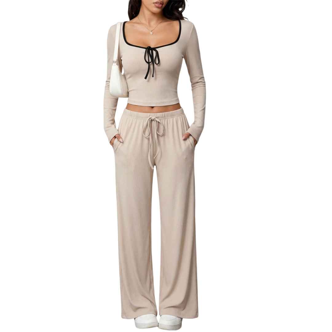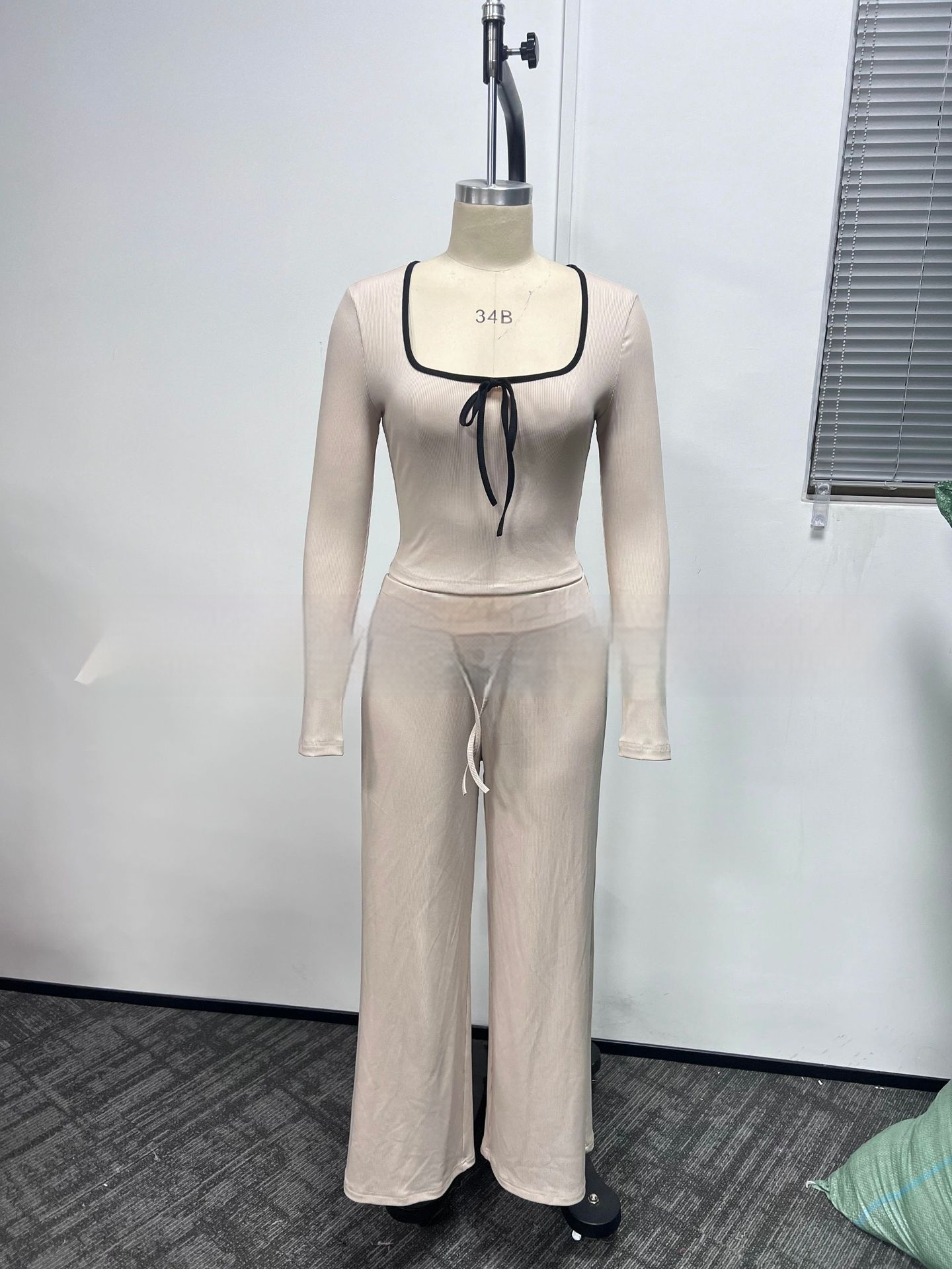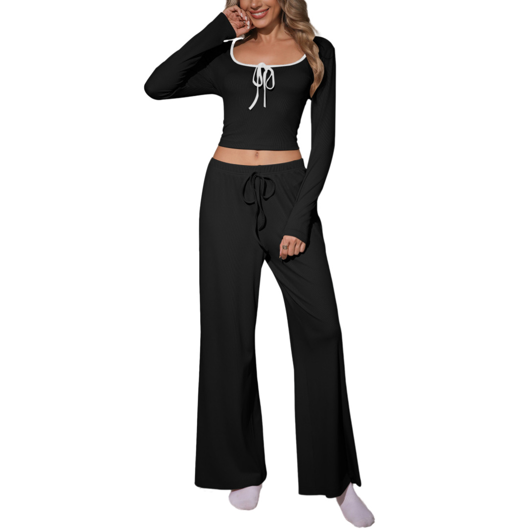 Trendy Elements: Solid Color, Bow Tie, Color-Block Design, Drawstring, Exposed Stitching, Mid-Rise Cut