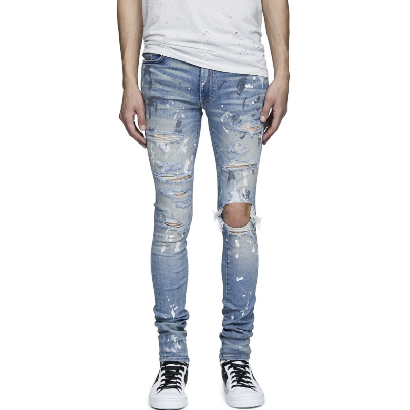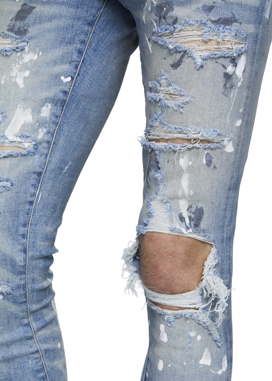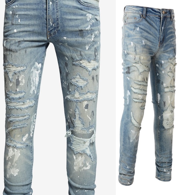 Torn Graffiti Old Wash Stretchy Slim Jeans Men