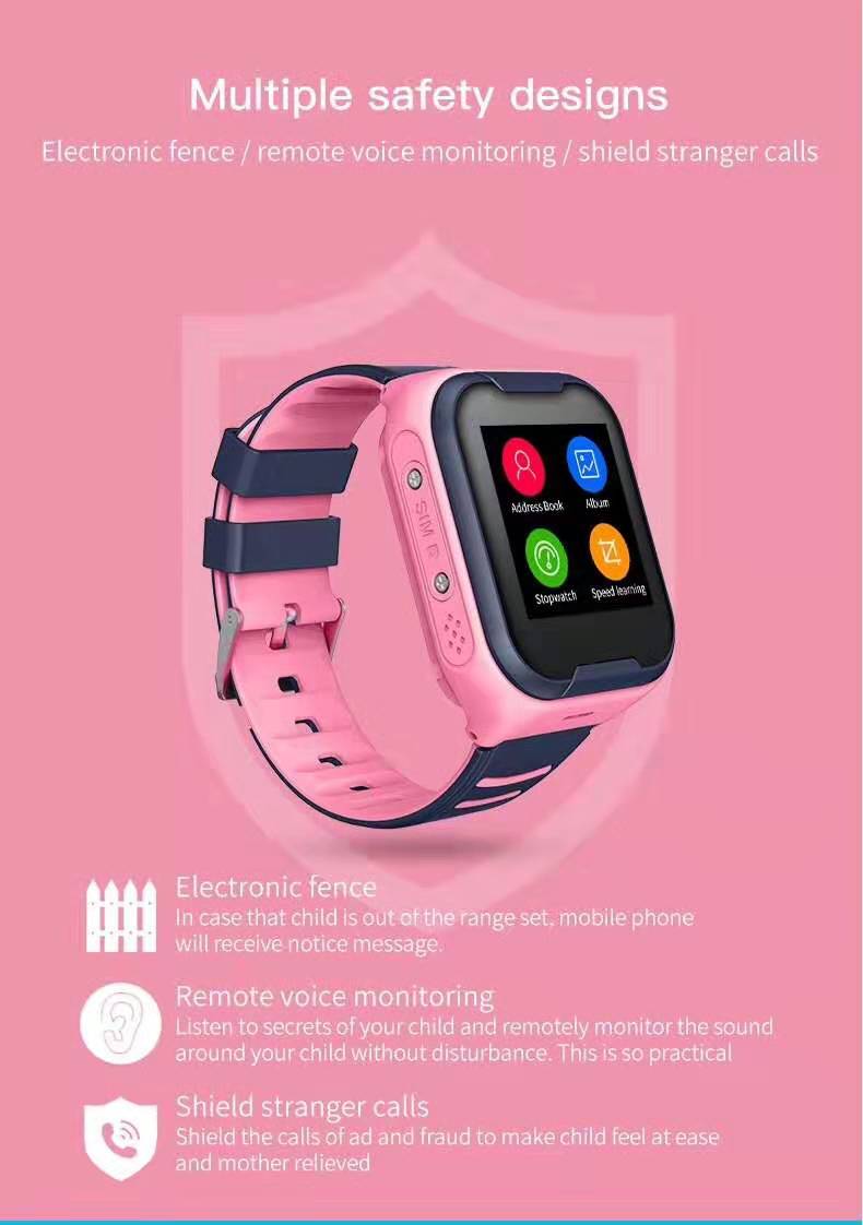 1. CPU:9820E(Spreadtrum Communications,Inc) 2.1.4 inch IPS touch screen, resolution: 240*240 pixel 3. SOS emergency call 4. WiFi, GPS, LBS, AGPS tracking 5. Phone call, Voice chat, Make friend, Education 6. Two way conversation 7. Tracking online, Electric fence 8. Track playback, pedometer 9. With APP supports both Android and IOS phone 10.Video call 11.4G call