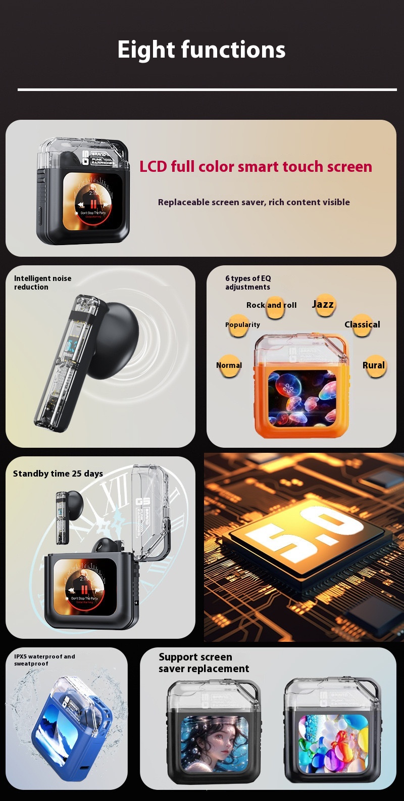 Functions: noise reduction, ultra-long life battery battery, call function, music support, digital display