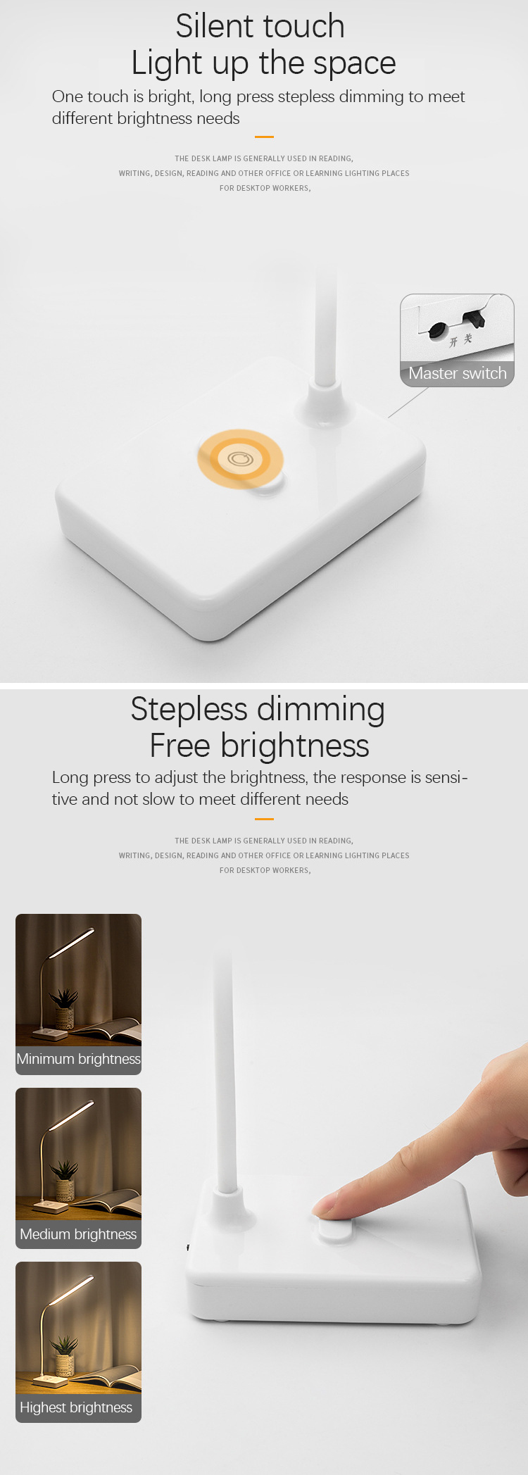 2. Long press continuous dimming to select the most comfortable light for eyes.