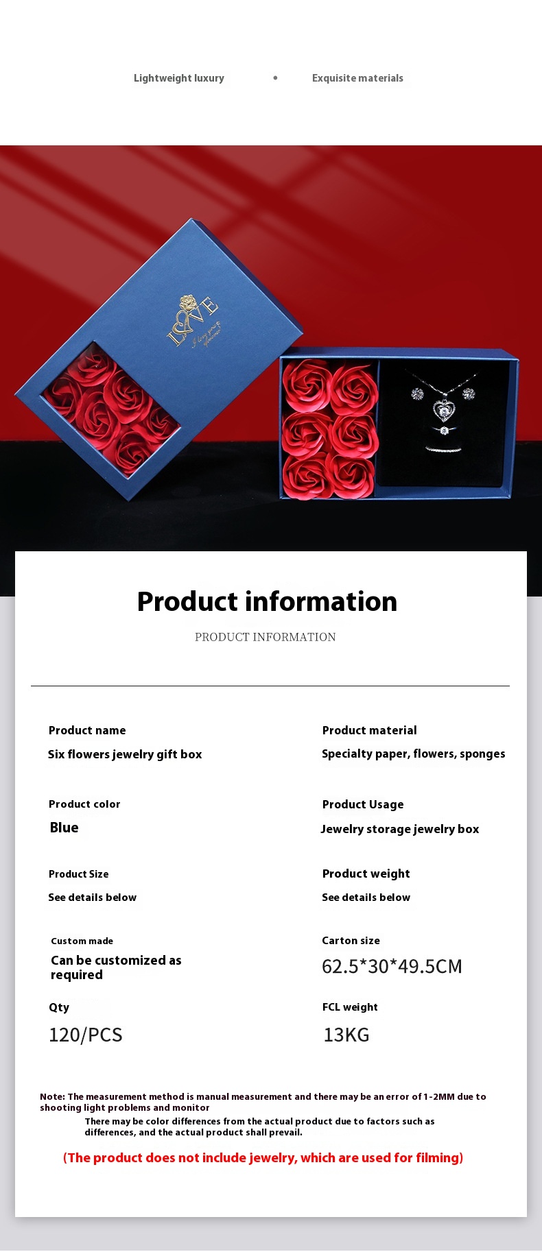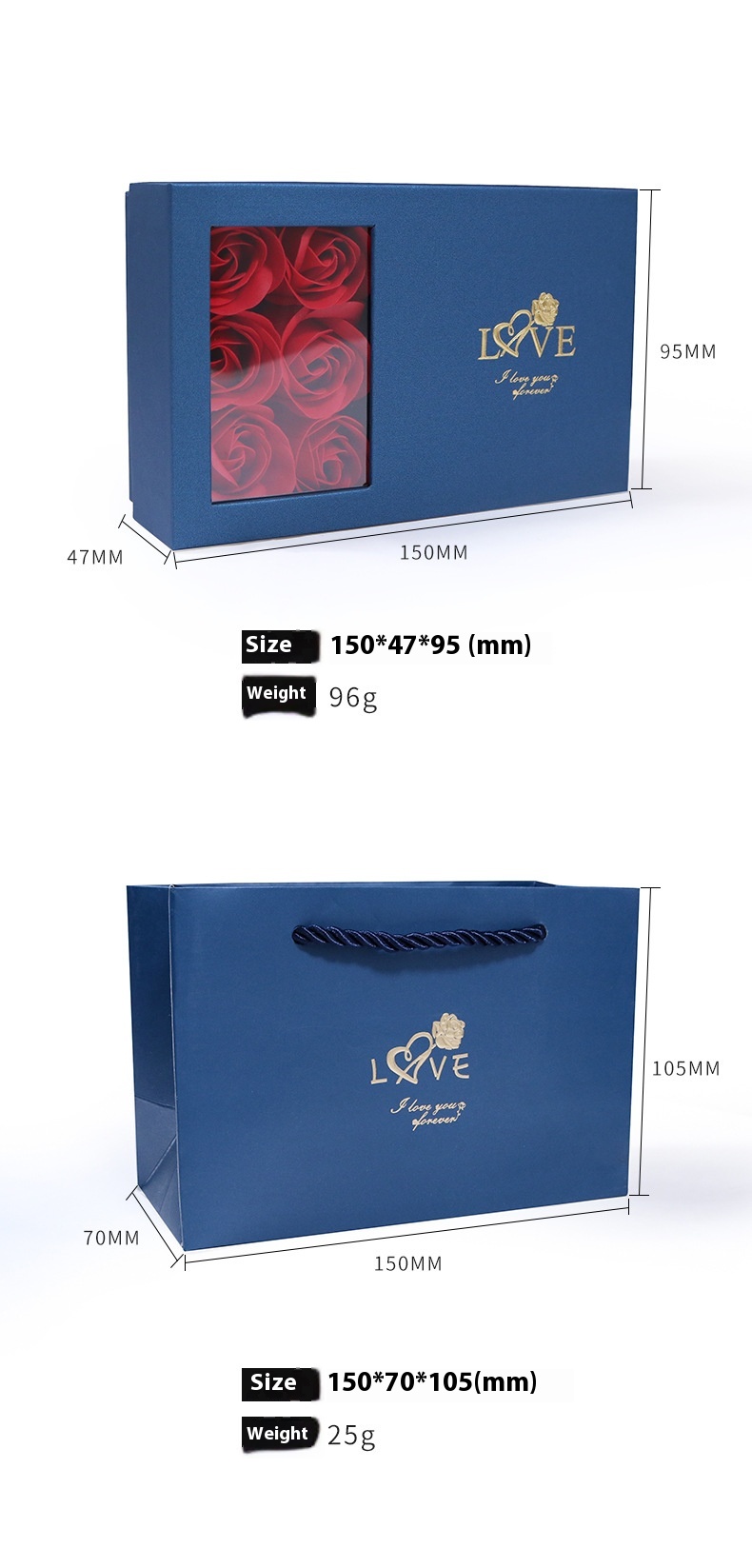 Product information:Color: Blue pearlescent touch paperSpecifications: gift box handbag RoseImport or not: no