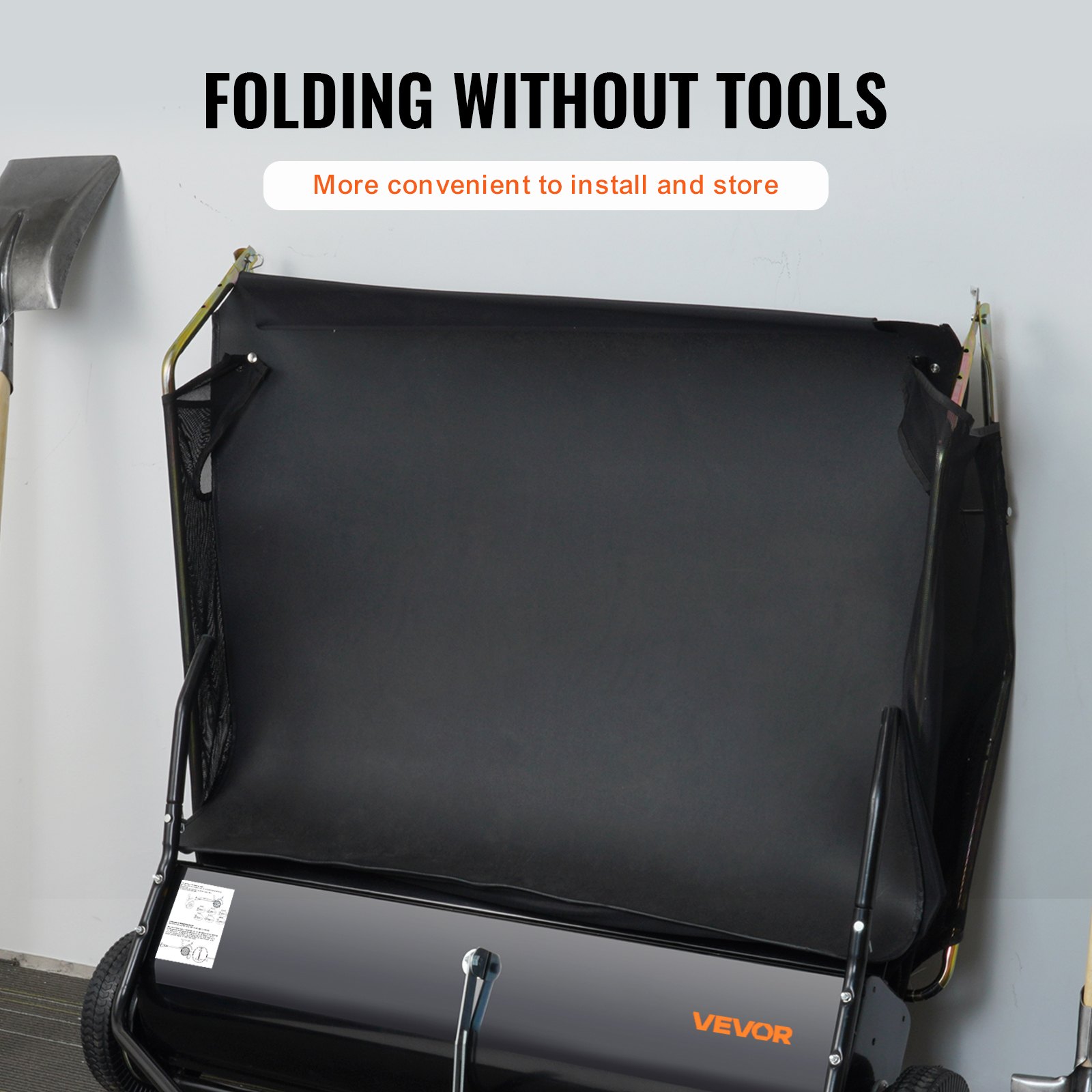 Hassle-Free Storage: Thanks to its innovative folding design, the heavy duty tow sweeper for lawn stores effortlessly. Tuck it into a shed or hang it on a garage wall, saving valuable space without the fuss.