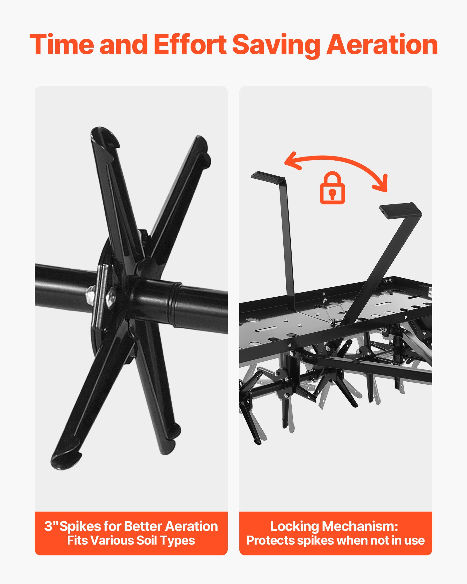 Heavy-Duty & Built to Last: Constructed from high-strength steel with a fully welded frame and reinforced hardware, this lawn aerator tool is designed to withstand long-term towing, muddy conditions, and outdoor exposure