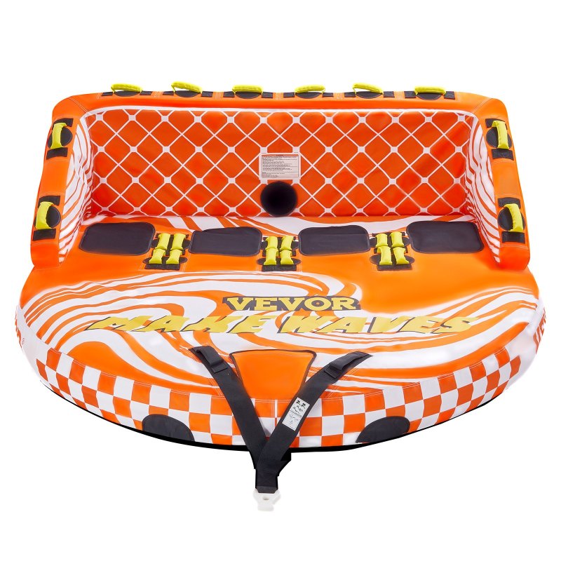 Safe and Exciting: Enjoy the thrill of surfing with our D-shaped couch towable tubes for boating, featuring a high backrest and wide sidewalls that safely prevent passengers from falling into the water. Our towable also features 22 padded grip handles, offering comfortable hand-holding, and 2 boarding straps for easy re-entry after a splash.