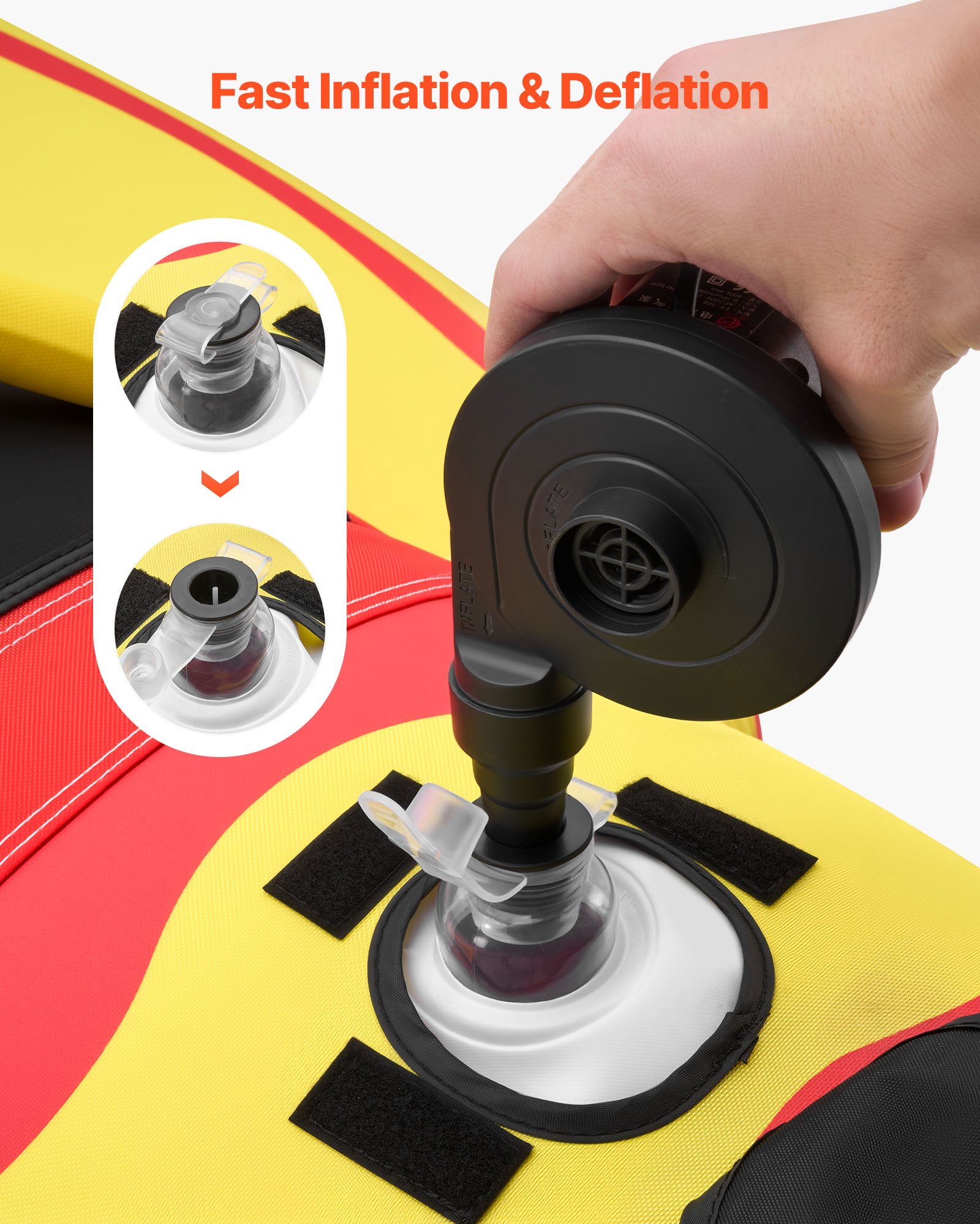 Quick Inflation & Deflation: Featuring a secure air valve for airtight sealing and leak resistance, this towable tube inflates and deflates easily. When not in use, just deflate it for compact storage and convenient transport (Inflation pump not included)