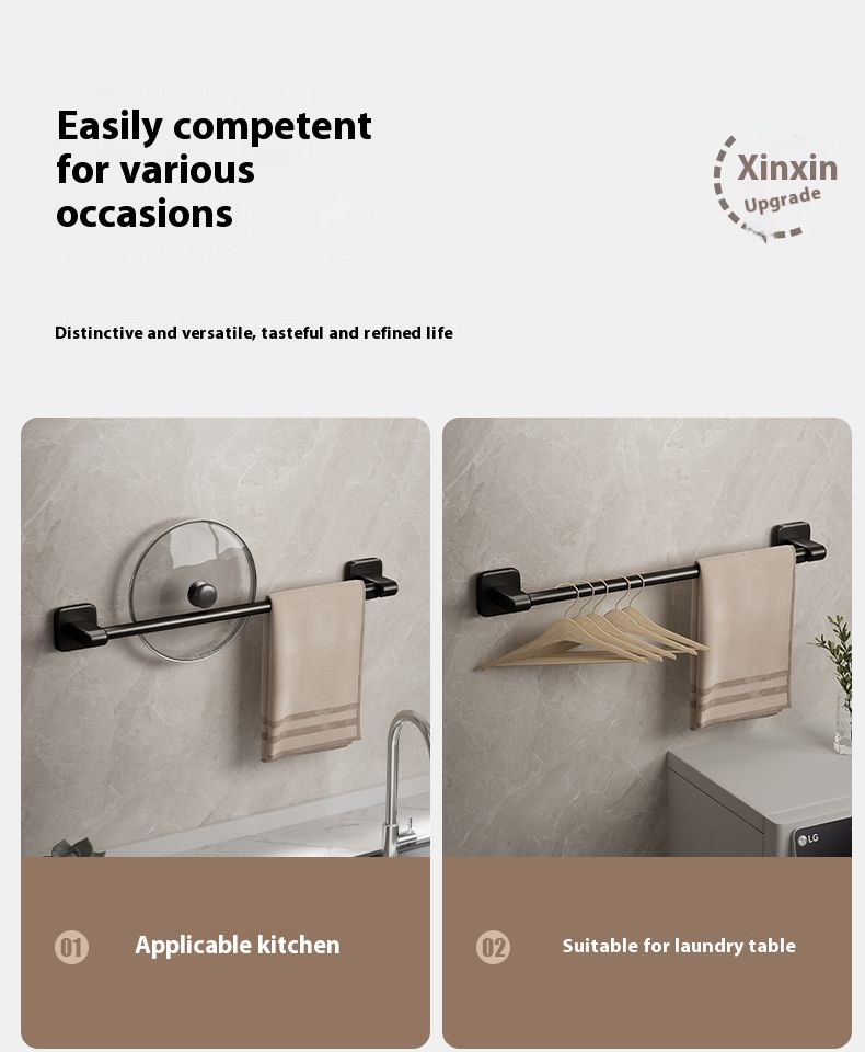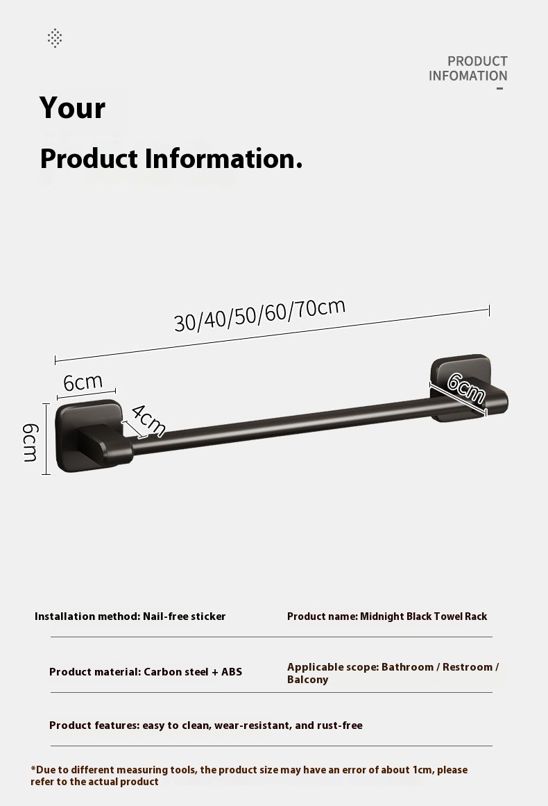 Size: Black 30cm towel rack (nail free stickers installation), Black 40cm towel rack (nail free stickers installation), Black 50cm towel rack (nail free stickers installation), Black 60cm towel rack (nail free stickers installation), black 70cm towel rack (nail free stickers installation), Black 80cm towel rack (nail-free sticker installation), gun gray 30cm towel rack (nail-free sticker installation), gun gray 40cm towel rack (nail-free sticker installation), gun gray 50cm towel rack (nail free stickers paper installation), gun gray 60cm towel rack (nail free stickers paper installation), gun gray 70cm towel rack (nail-free sticker installation), gun gray 80cm towel rack (nail-free sticker installation), cream color 30cm towel rack (nail-free sticker installation), cream color 40cm towel rack (nail free stickers installation), cream color 50cm towel rack (nail free stickers installation), cream color 60cm towel rack (nail free stickers paper installation), cream color 70cm towel rack (nail free stickers paper installation), cream color 80cm towel rack (nail free stickers paper installation)