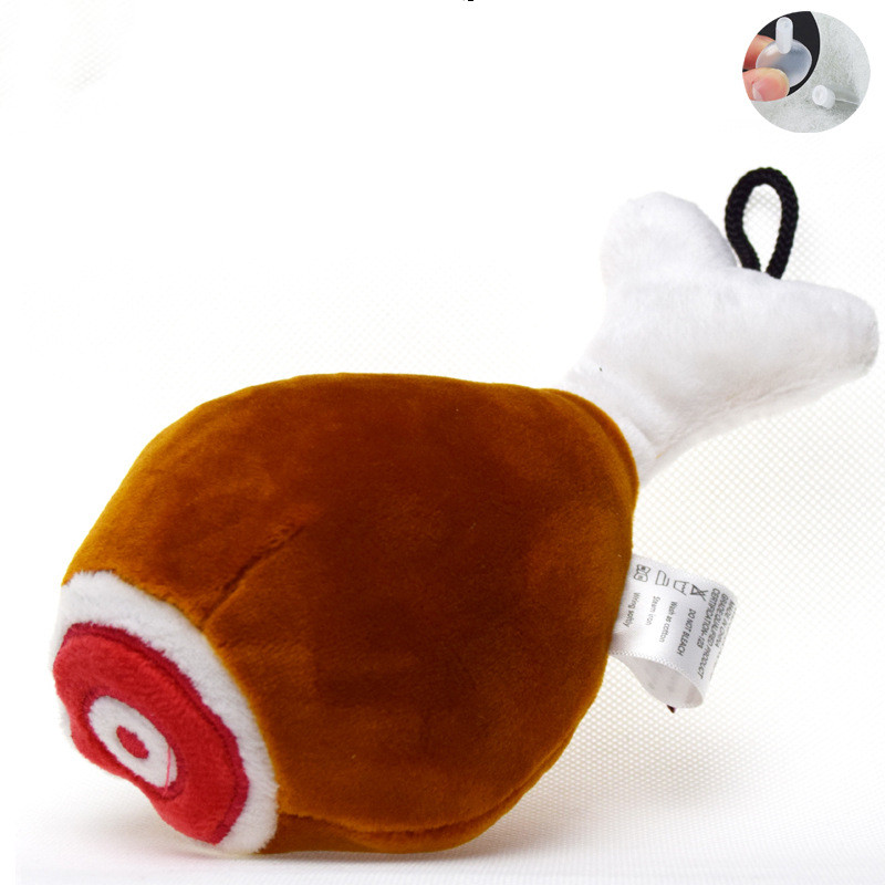 Funny chicken and dog toys are made of soft and lightweight Plush filled with ppcotton. The design of the chicken leg shape will attract more attention from your dog, and the creaking function is a good way for your pet to keep happy and resistant when they can't play with them.