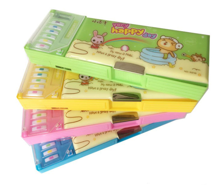 Product features: pencil sharpener, calendar, eraser case, thermometer, pop-up pen case, magnifier, multi-function pen cas