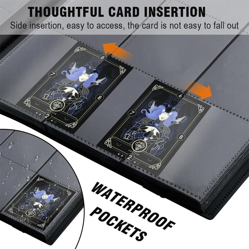 - Card Storage Folder: For Most Photos And Standard Size Cards. Waterproof materials, double-sided pocket, built-in layer of padding between each pocket, Transparent plastic more convenient for you to handle your cards. Protect your card from being scratched and moistured.