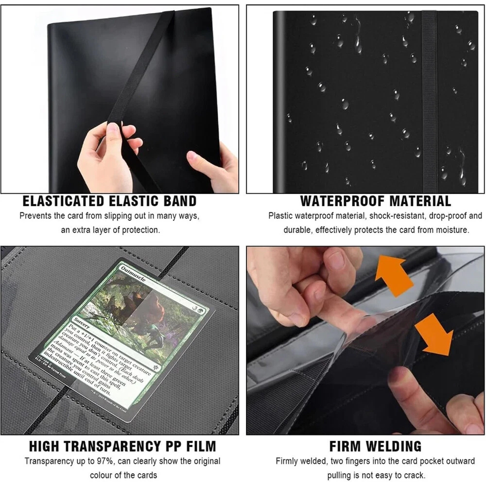 - Card Binder Security Storage: Trading card storage' inner page of the has a compartment design, card folders' outer shell is designed with a freely adjustable elastic band, and the outer elastic band prevents the card from falling and moving
