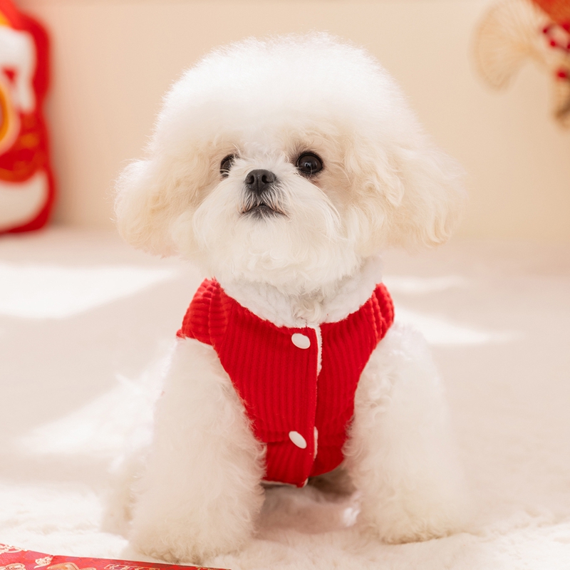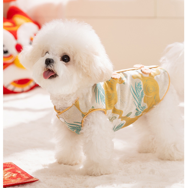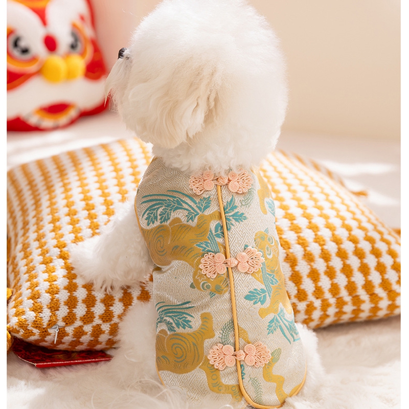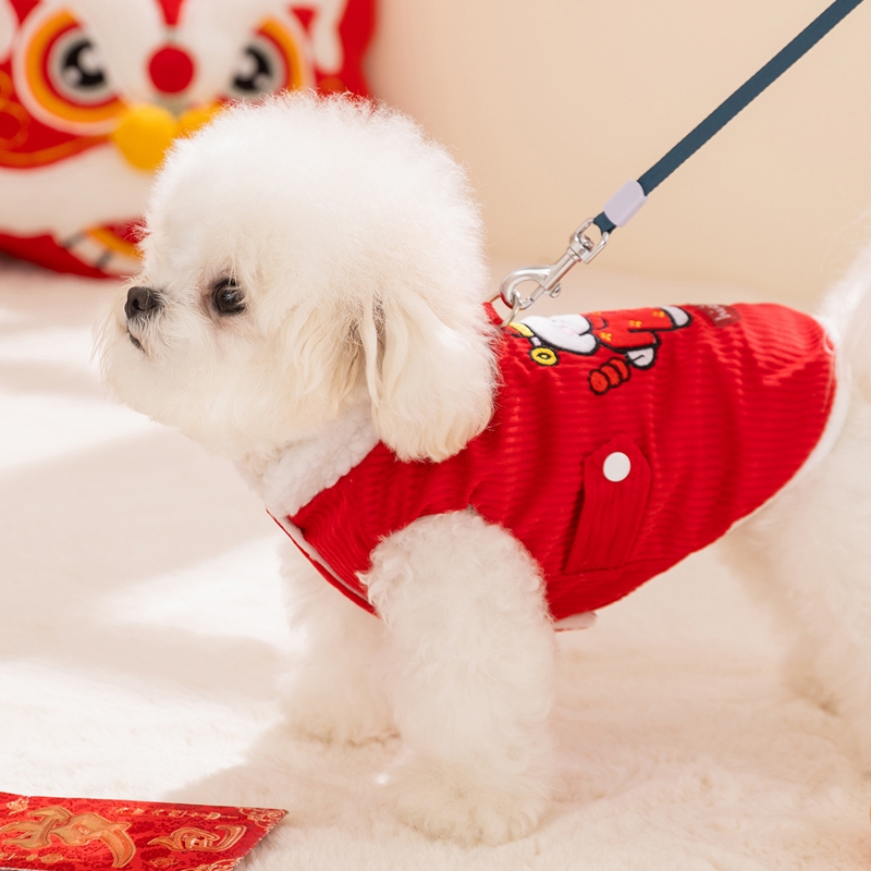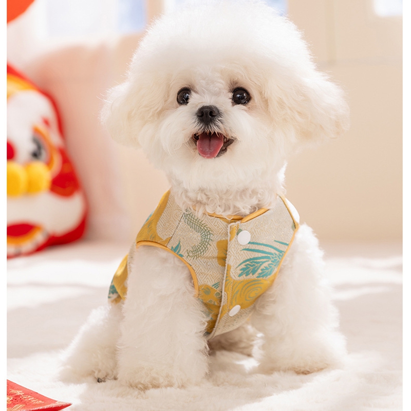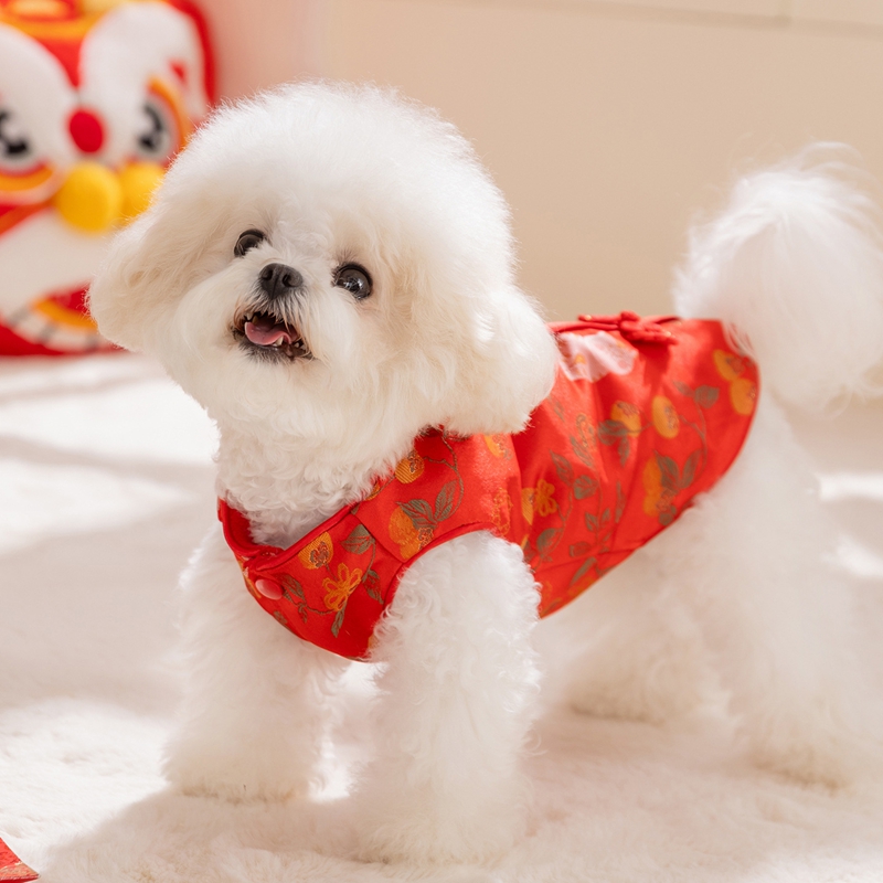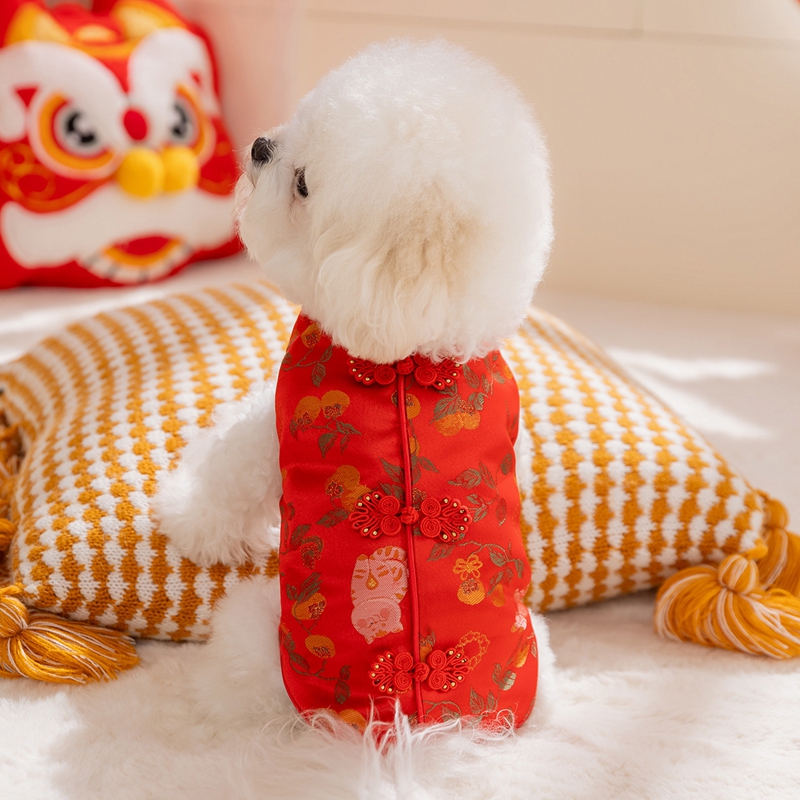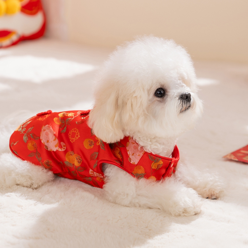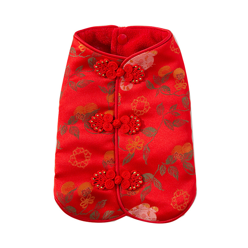 Elevate your pet's festive style with this Traditional Chinese Cheongsam Pet Vest! Crafted in vibrant red with intricate floral and fruit patterns, it features classic Chinese knot buttons for an authentic cultural touch. The soft, warm fabric makes it perfect for Lunar New Year celebrations, bringing good luck and charm to your furry companion. Ideal for festive gatherings or traditional events, this vest combines heritage, style, and comfort, ensuring your pet stands out with elegance and cultural flair. A must-have for pet parents wanting to embrace Chinese traditions with their beloved pets!