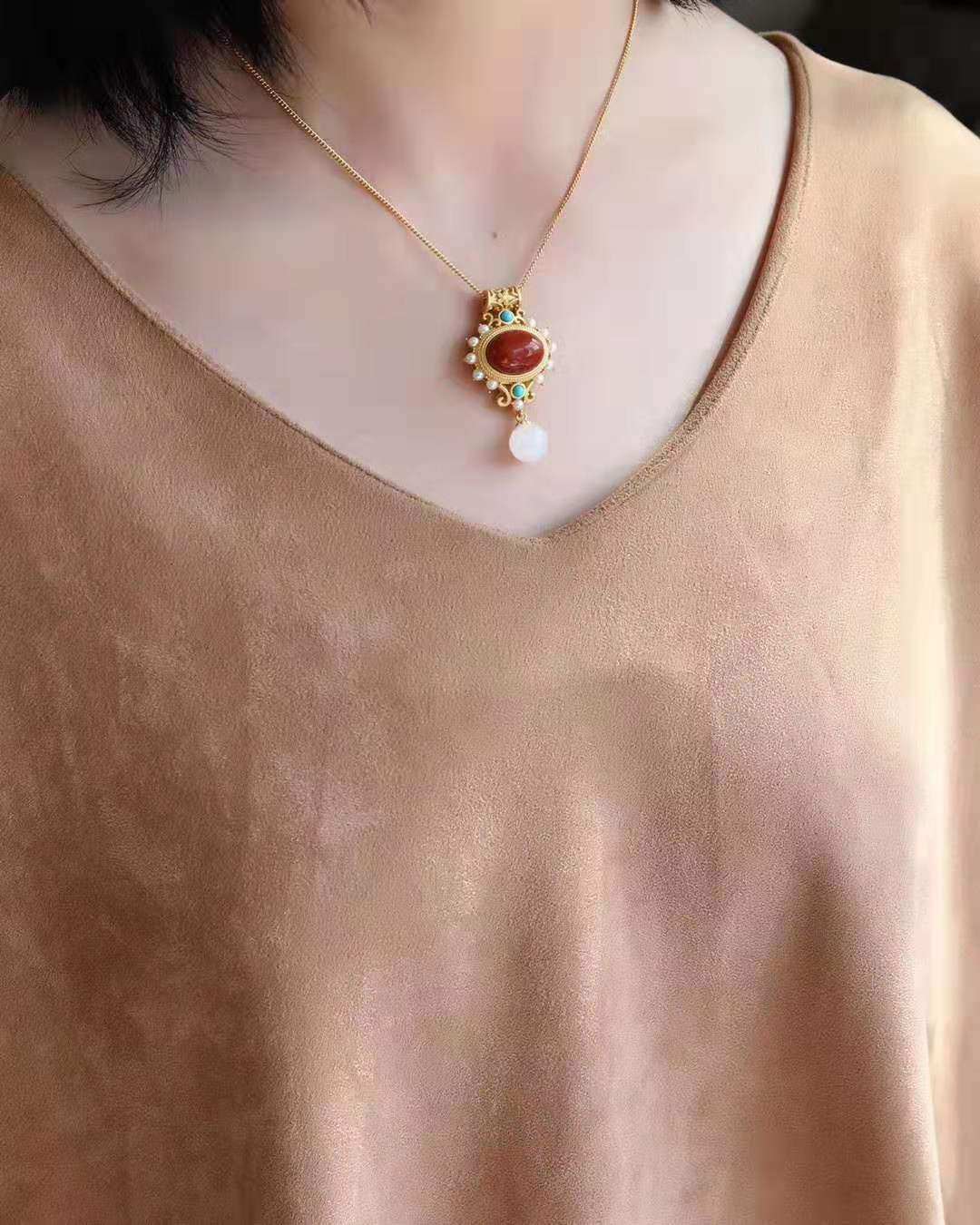 Color: South Red Single Pendant, South Red Pendant with Cross Chain