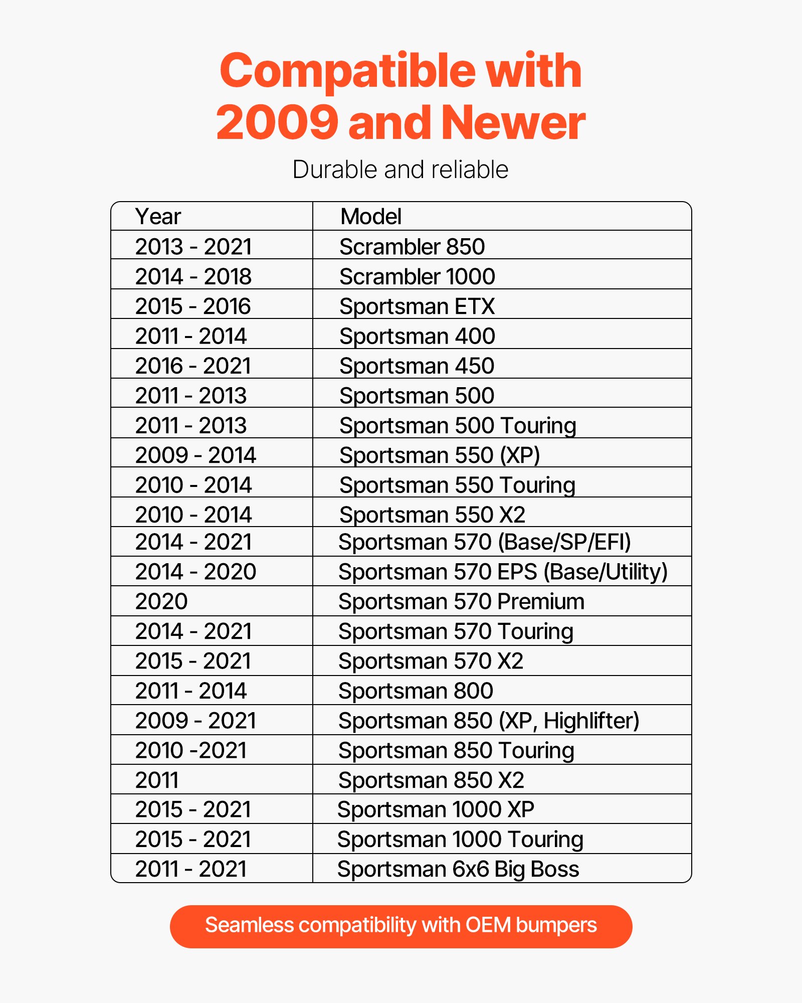 Compatible with Polaris Sportsman Models: Our winch hitch mount is custom-designed for all Polaris Sportsman models from 2009 to present, seamlessly compatible with OEM bumpers. No additional modifications or drilling required, providing a true plug-and-play experience