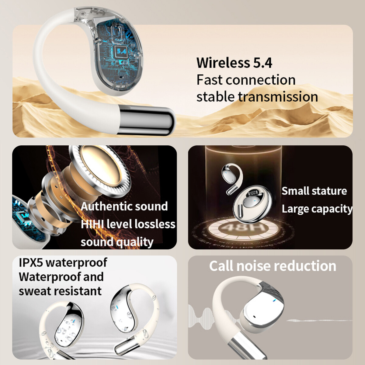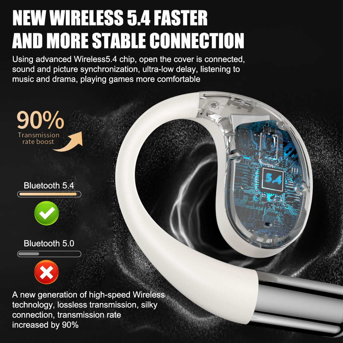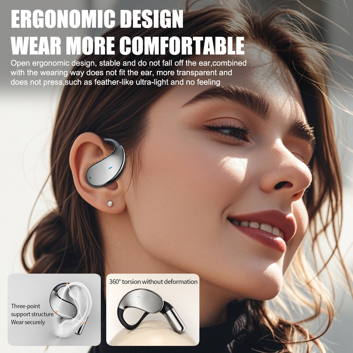 9, Earphone hanging ear design, not into the ear, directional sound transmission, no sound leakage; ergonomic ear hangers, comfortable to wear;