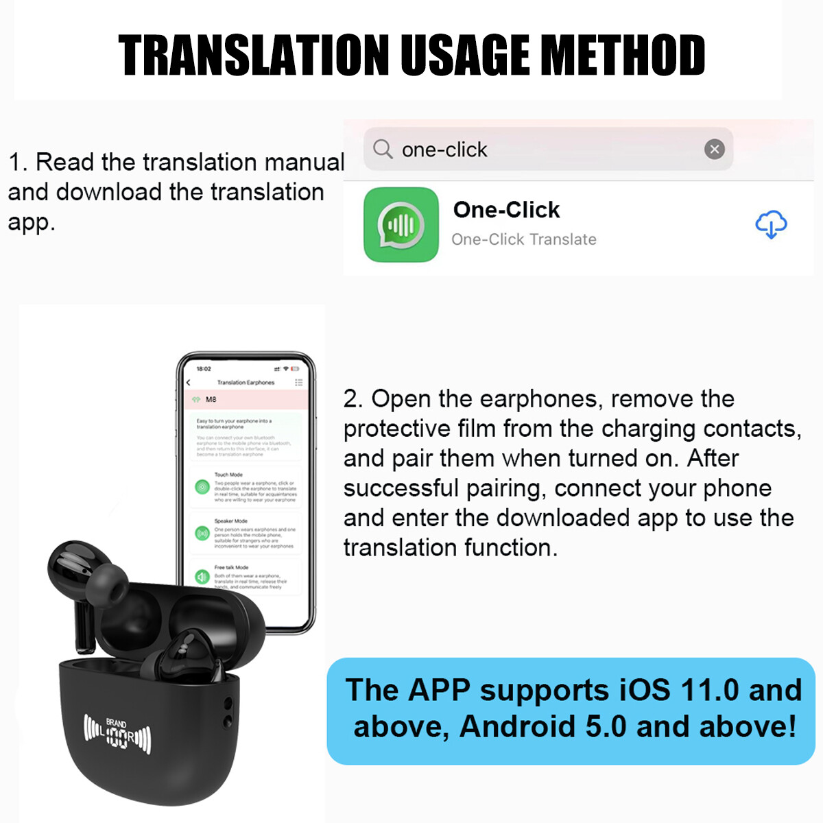 Easily understand 100+ languages. These earbuds are your ultimate travel partner, turning any destination into a familiar place. Explore a new city, enjoy the local culture, and interact with locals easily. Enjoy superior sound quality with the all-in-one translation earbuds, providing pure sound quality for speaking and listening, ensuring an unparalleled communication experience. The BT translation earbuds have a listening time of about 6 hours and a communication distance of 10 meters. It is more convenient to use whether translating or listening to songs.