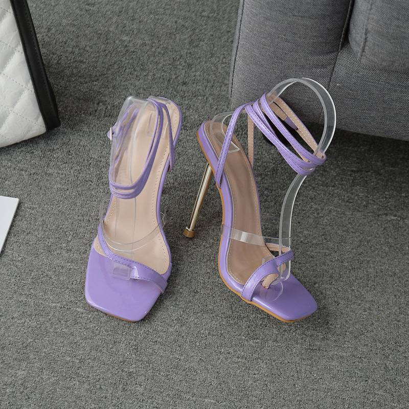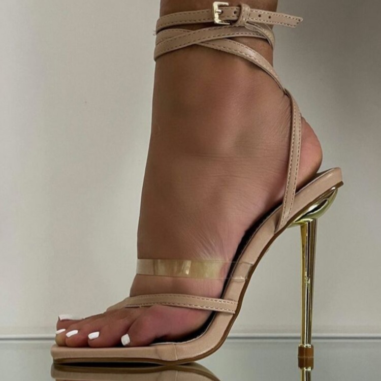 Transparent Colorblock Plated High Heel Buckle Slipon Sandals