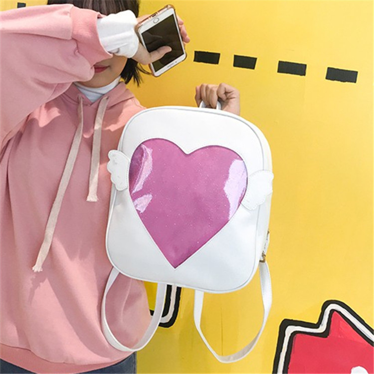 Transparent Cute Heart Window Soft Girl Backpack