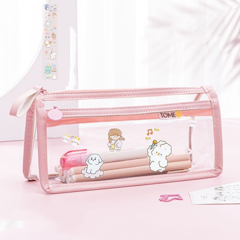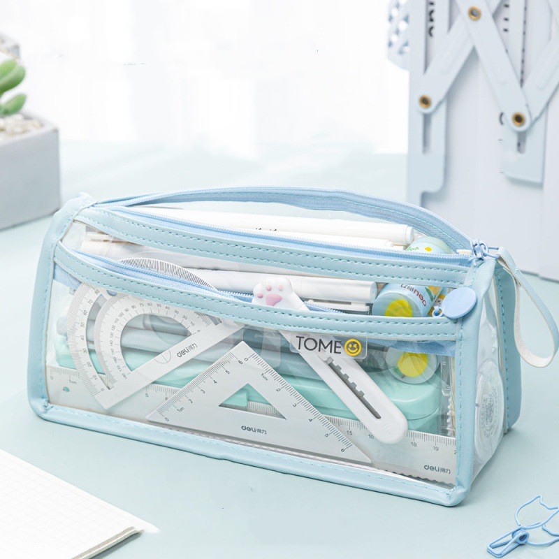 Style:Main picture hot selling model + double layer + fresh. blue,Main picture hot selling model + double layer + fresh. Blue + Sticker,Beige [Double layer large capacity transparent],[Send Cartoon stickers] Beige/Double layer large capacity,Dream Purple 【 Double Layer Large Capacity Transparent 】,Romantic Powder [Double layer Large capacity Transparent],[Send cartoon stickers] Romantic powder/Double layer large capacity
