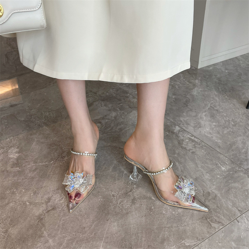 Transparent Female Baotou Shoes With Rhinestone Buckle