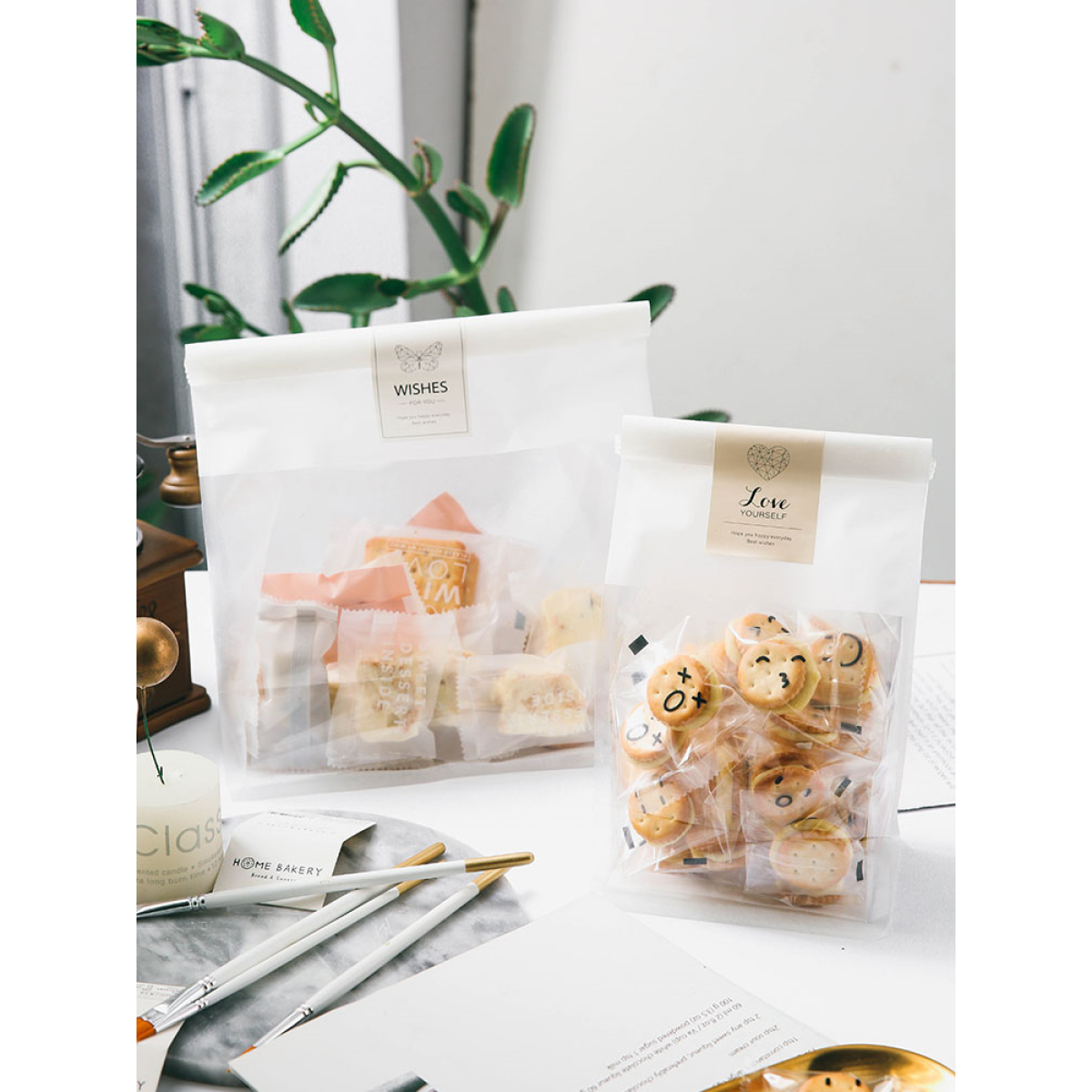 Color classification: 50 small simple cotton paper transparent snack bags (with curling iron wire) 50 large simple cotton paper transparent transparent snack bags (with curling iron wire) wish&love stickers (2 colors) 80 pieces 50 white open Window cotton paper bag (with curled wire)