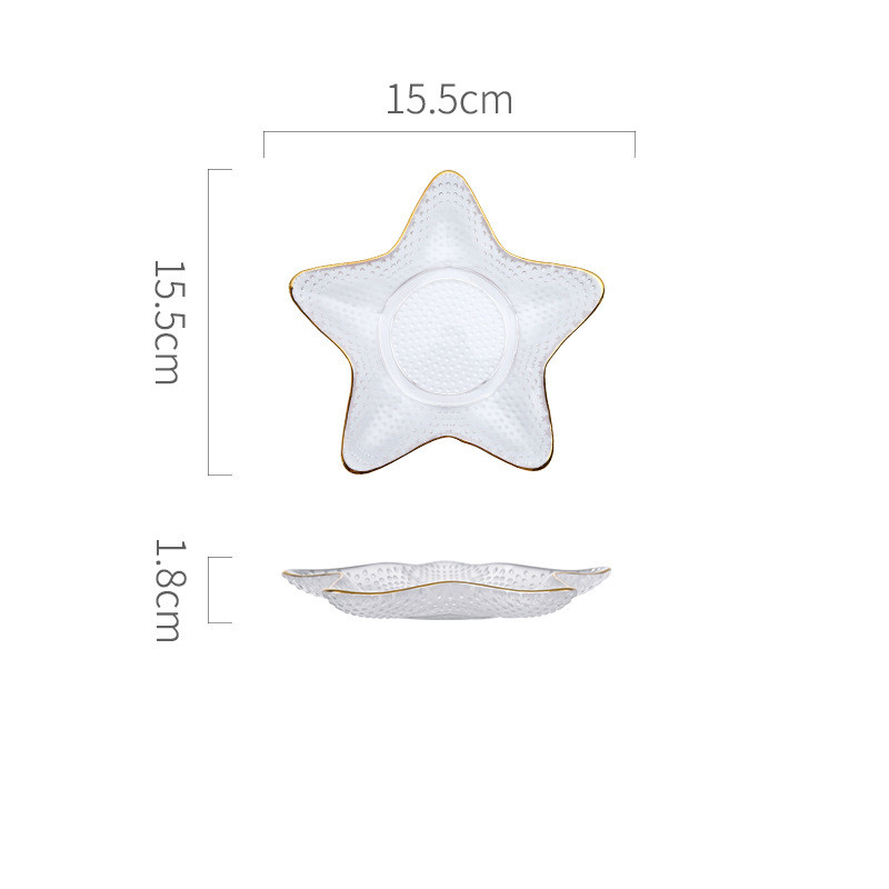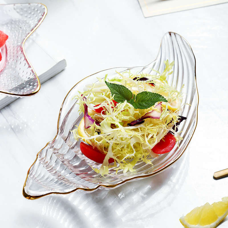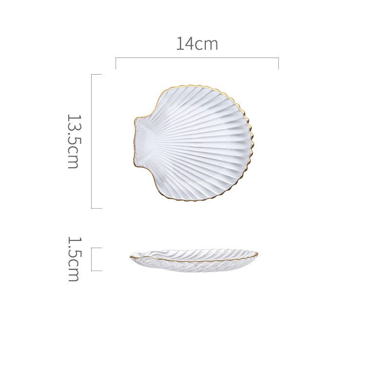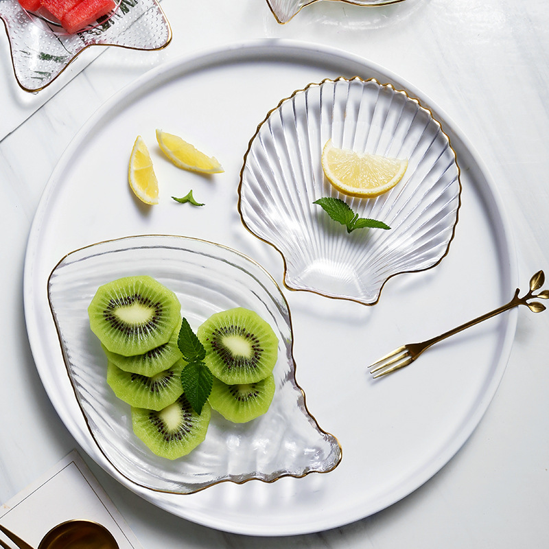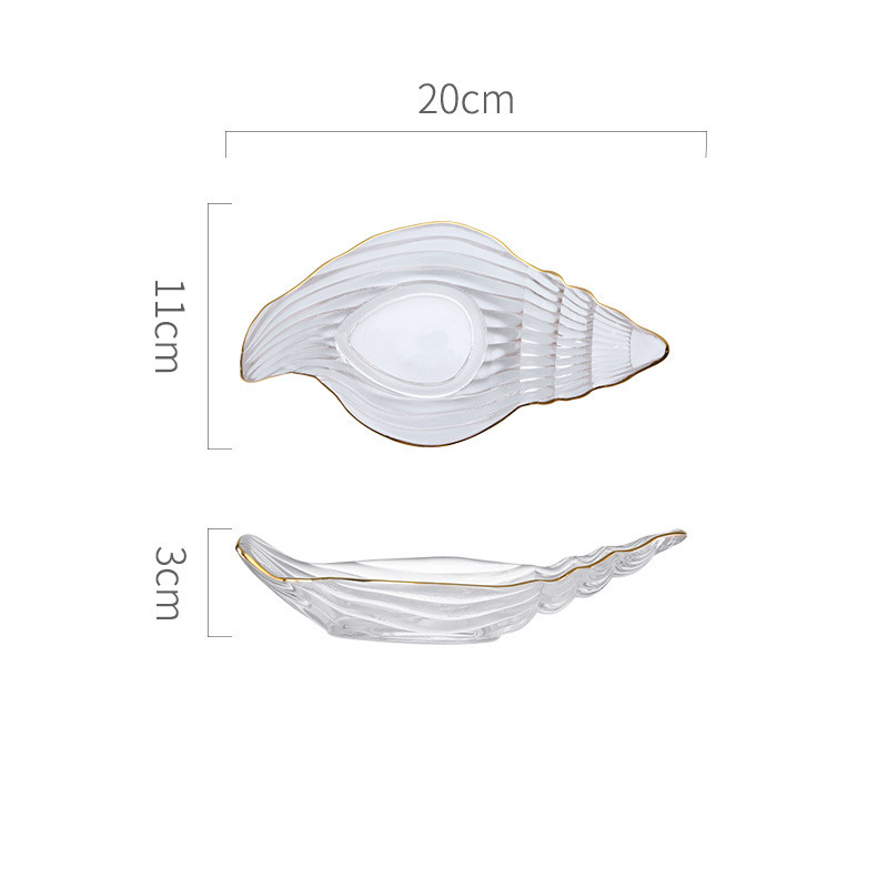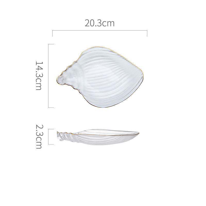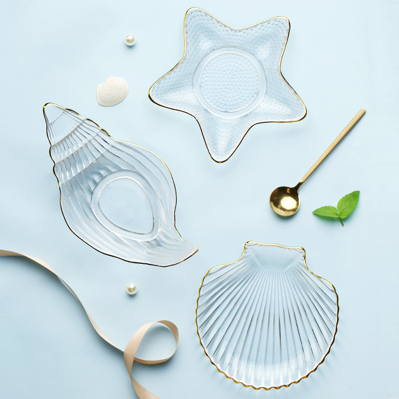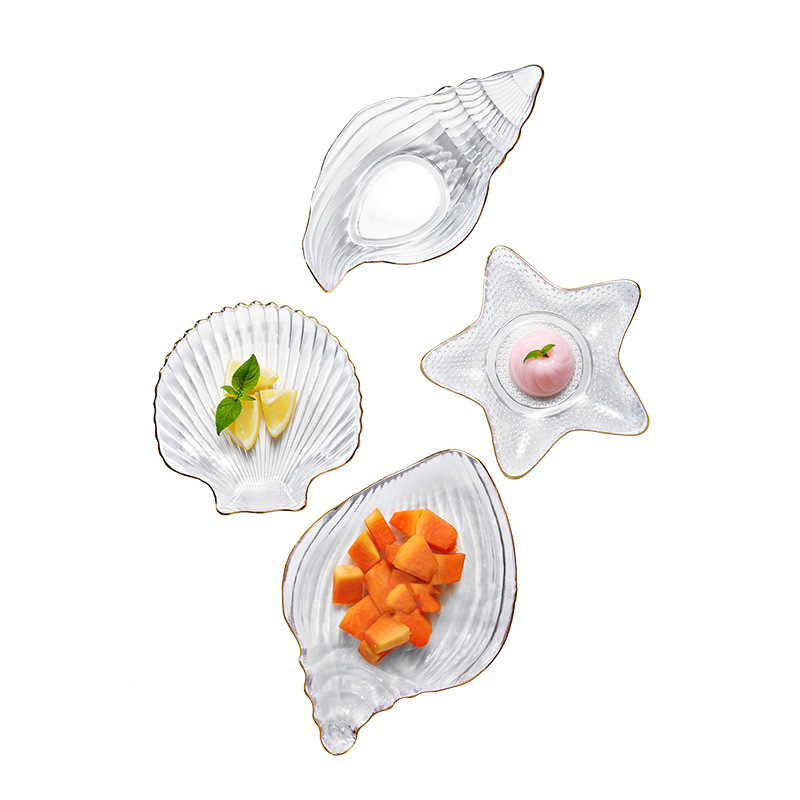 Scallop, starfish, and conch-shaped dinner plates made of crystal glass with transparent texture