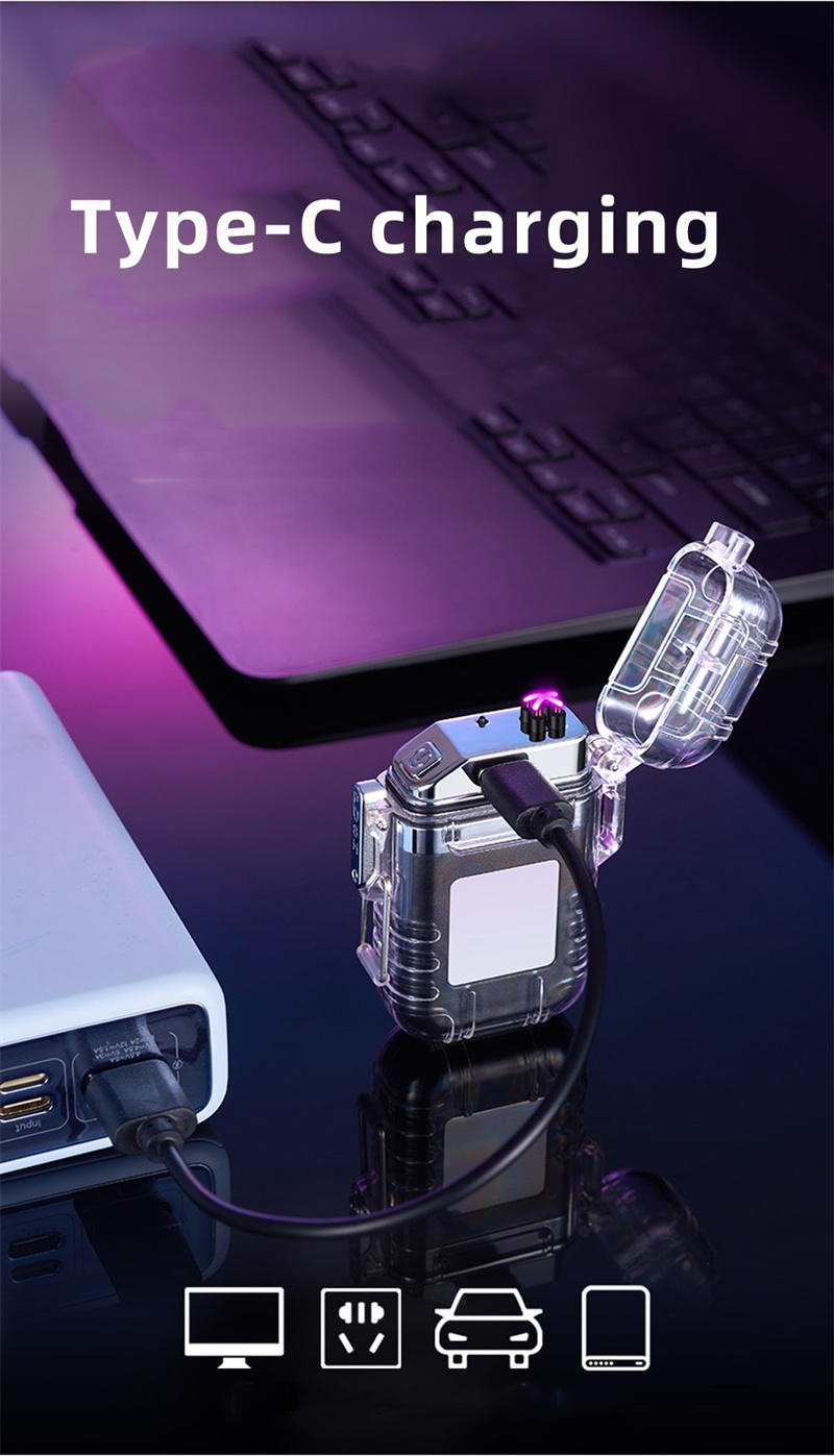 【Double/Dual Arc Lighter】This dual arc lighter Ignites a fire in an instant with no fear of rain and storm. With a distinctive transparent shell and detachable pocket clip design, this cool usb lighter is a nice gift for outdoor enthusiasts, which can be used as a fire starter, camping tactical gear, survival tool and more.