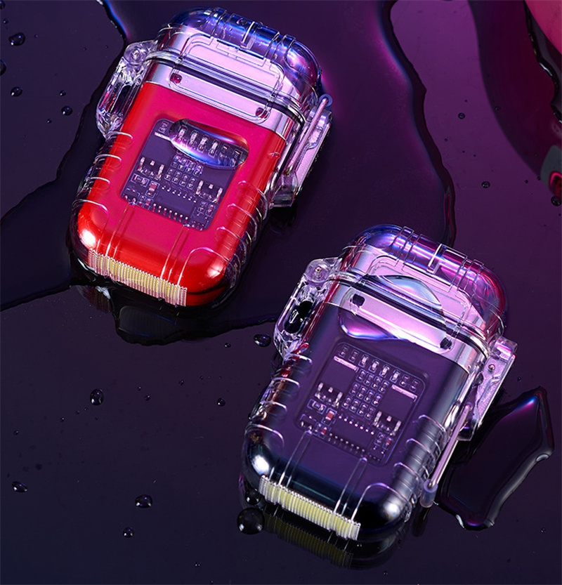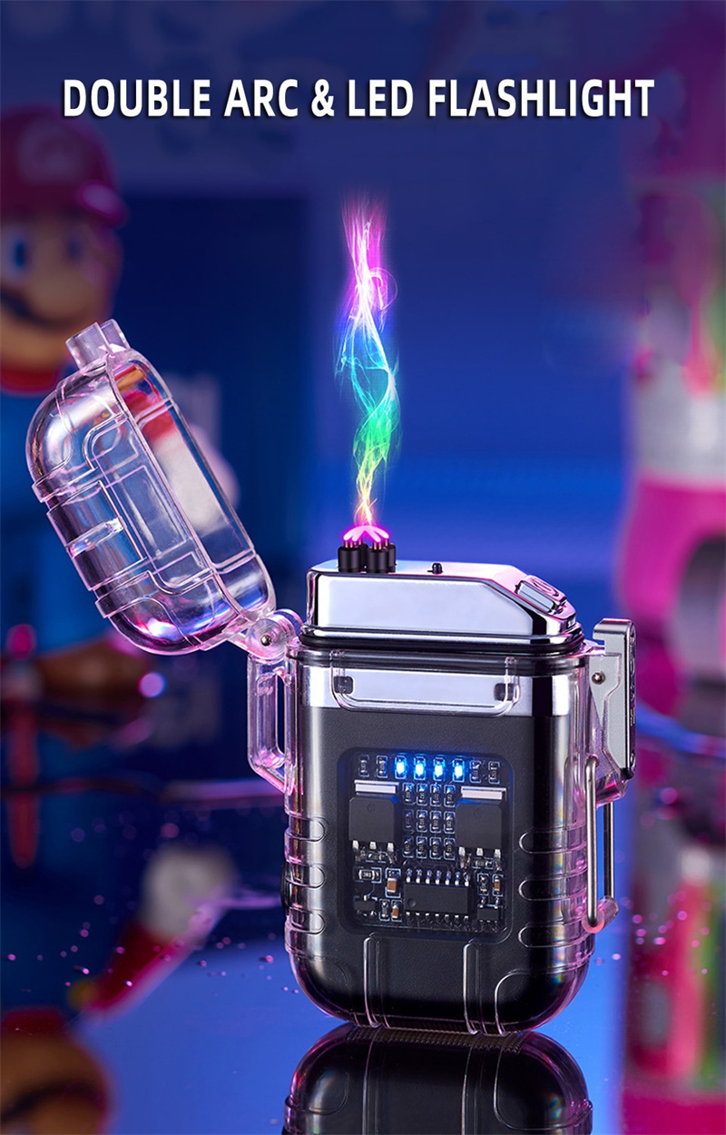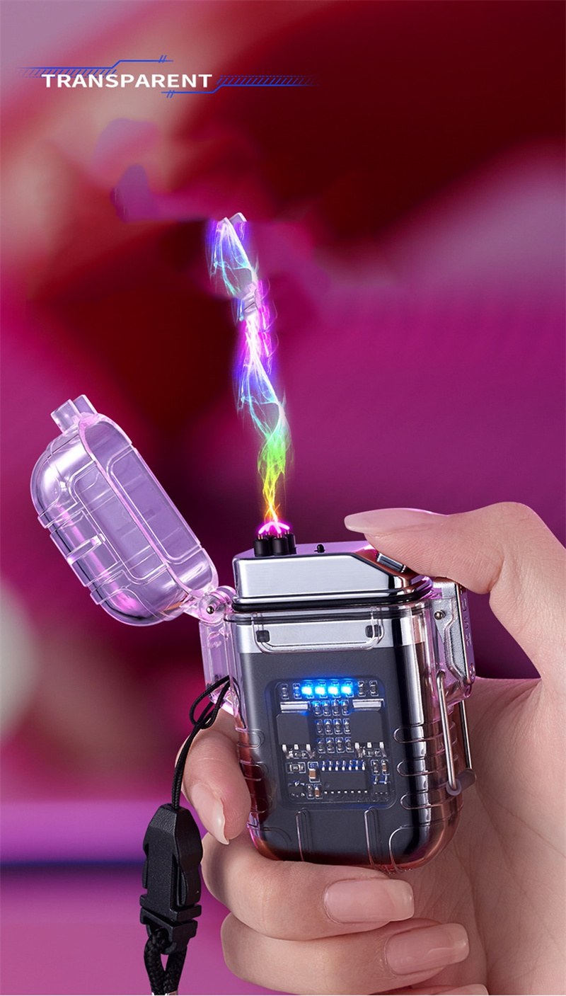 Transparent Shell Double Arc Lighter Waterproof And Windproof Outdoor Lighter Lighting Multi-purpose Electronic Cigarette Lighter