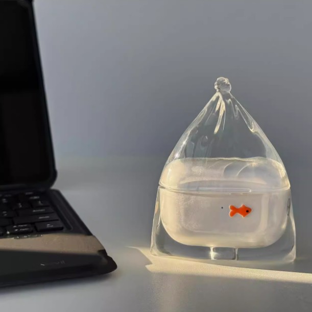 Transparent Soft Silicone Not Easy To Touch Gray Goldfish Earphone Case Protective Cover