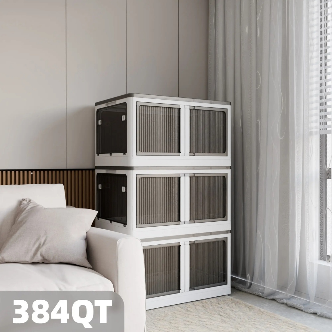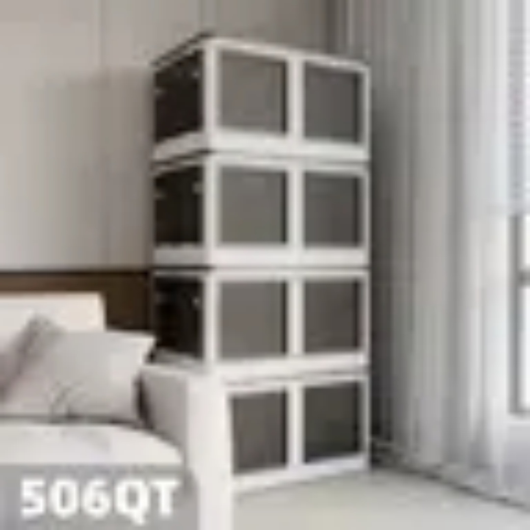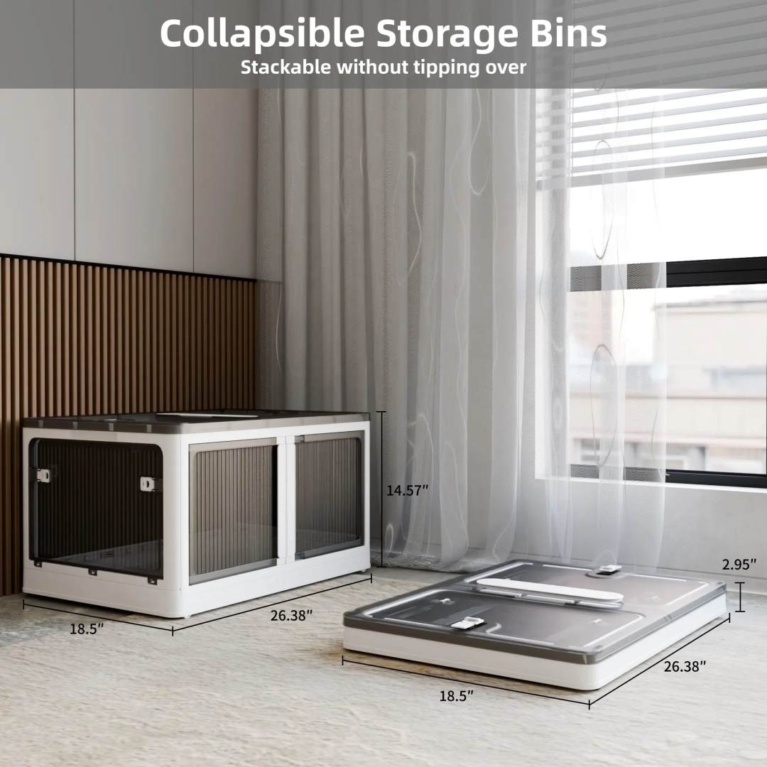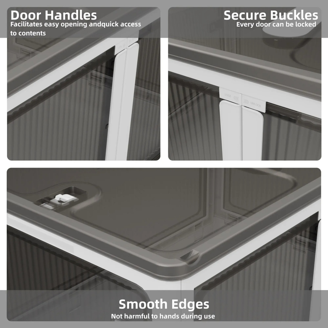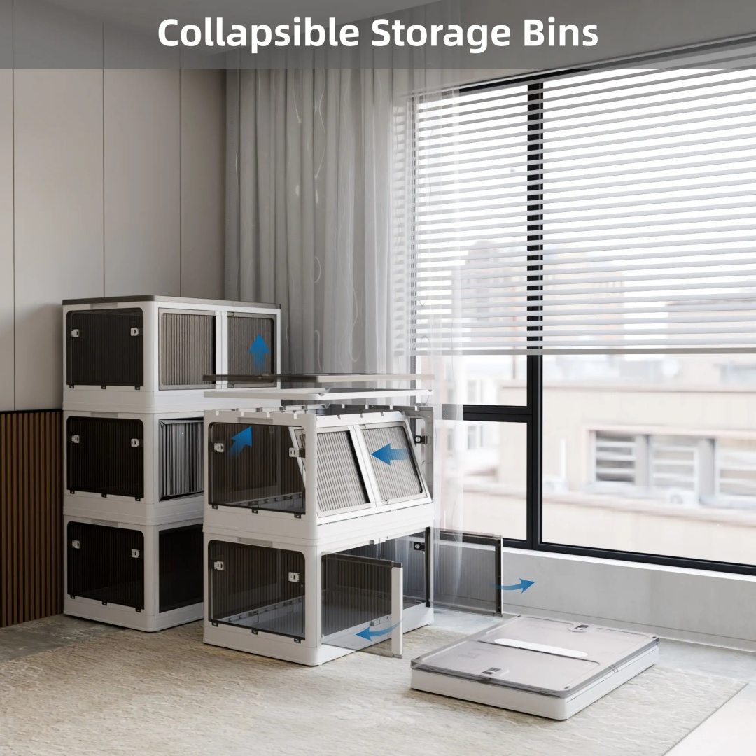 Product Name: 506QT 4-Pack Clear Stackable Storage Box with 5 Door Opening, With Wheels, Folding Plastic Craft Container Large Closet Storage Box for Bedroom Living Room Learning Kids Toys, Black