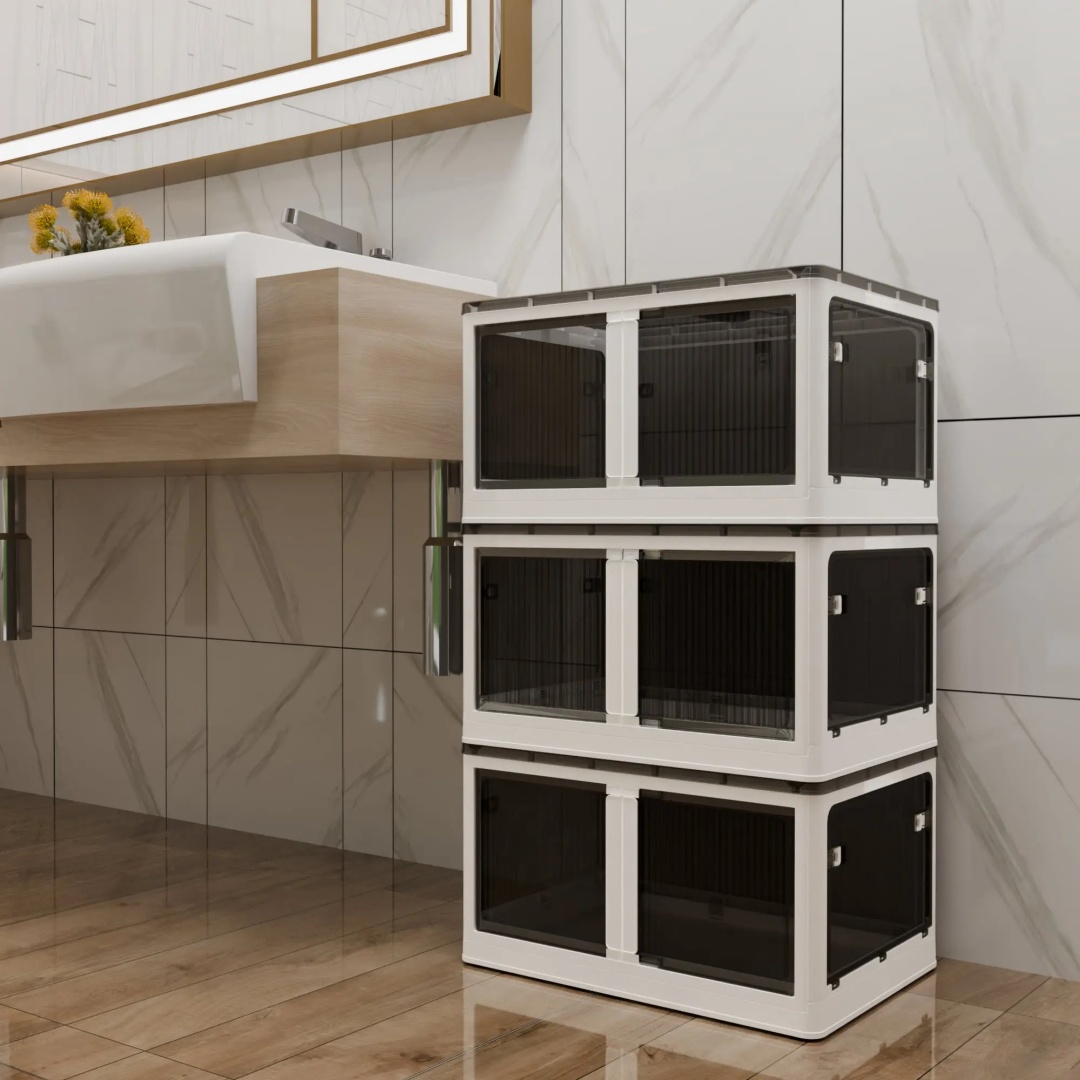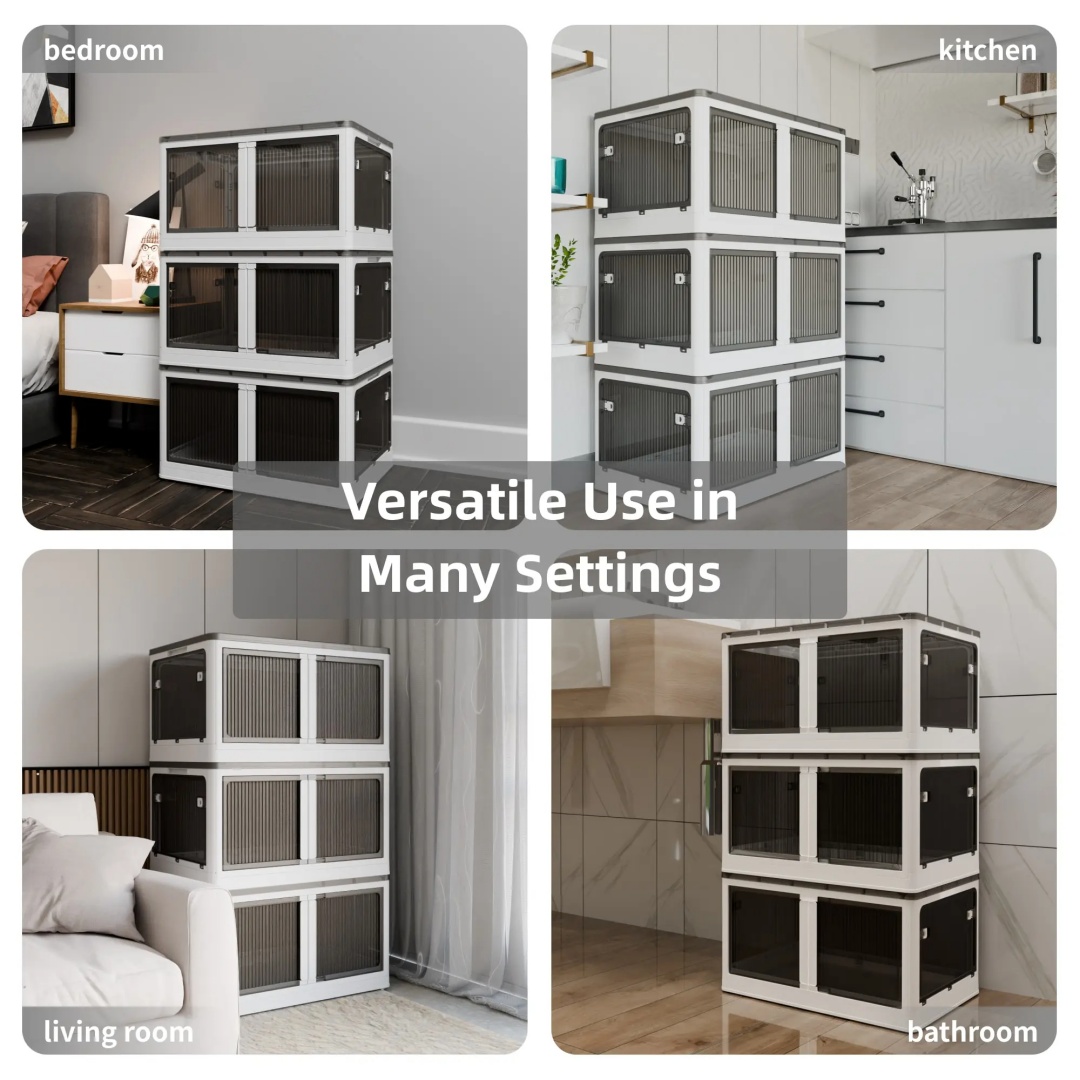 【Multi-functional storage organizer with wide application】: Large storage cabinets are ideal for organizing toys, crafts, photos, clothes, hats, snacks, food, medicines, etc. Our stackable storage bins with handles offer highly adaptable and flexible storage options to meet your different needs kitchen cabinet organizer, bathroom organizer, closet laundry organizer, dorm essentials storage bin, classroom book storage bin, snack storage bin, toy storage bin, car trunk, camping storage bin, office storage bin, etc.