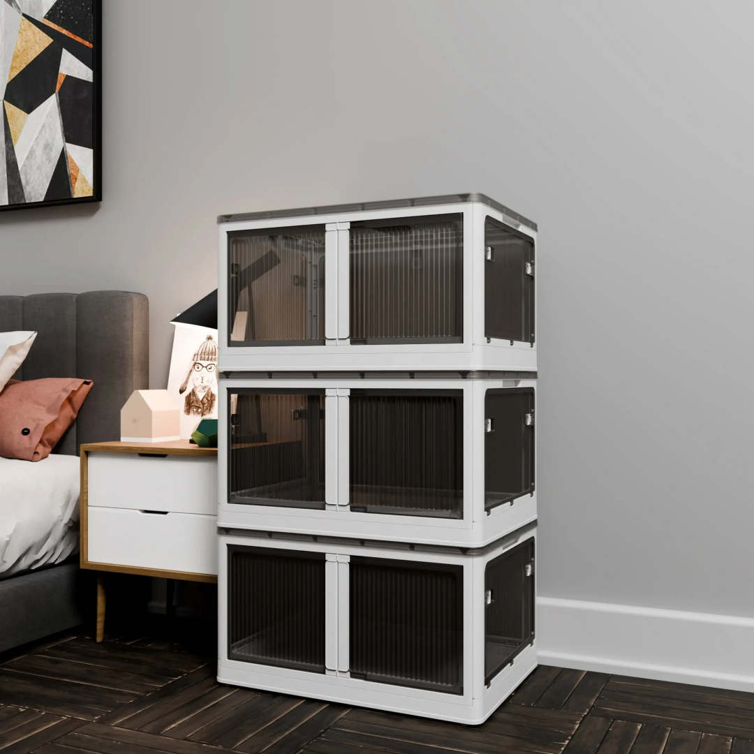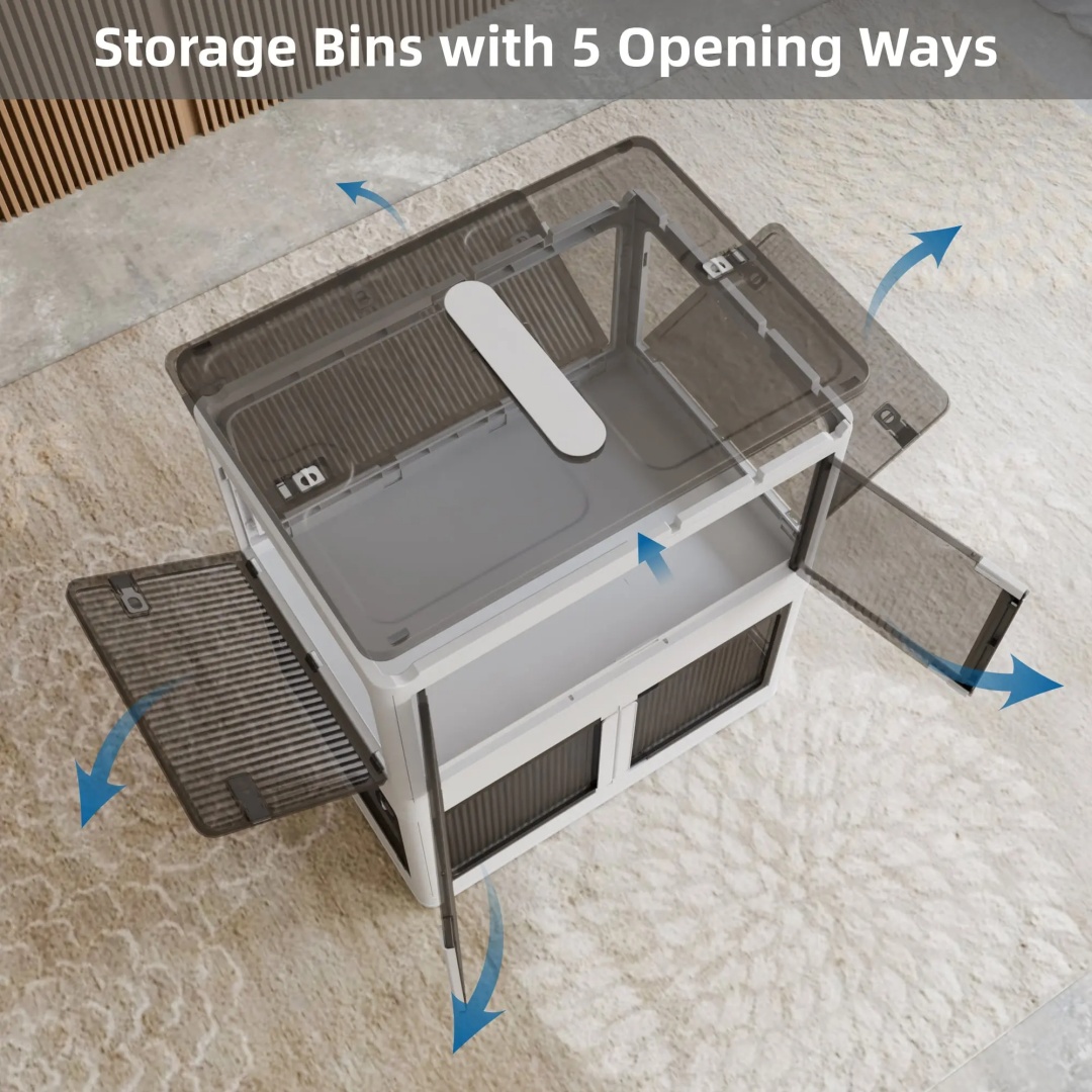 【5 ways to open】: There are 5 ways to open the foldable storage box – with a lid on the top, a door on the front, and 3 doors on the other side. The top lid allows you to store items quickly, while the front door makes it easy to access without having to move or remove items from the top.