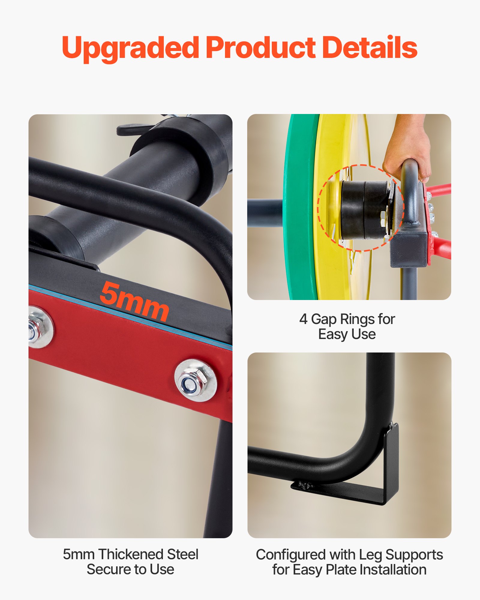 Humanized Design: The shrug bar is equipped with 4 spacer rings—2 for each side—creating extra space between the weights and your hands for more comfortable training. The connection plates are upgraded to ultra-thick 5mm steel