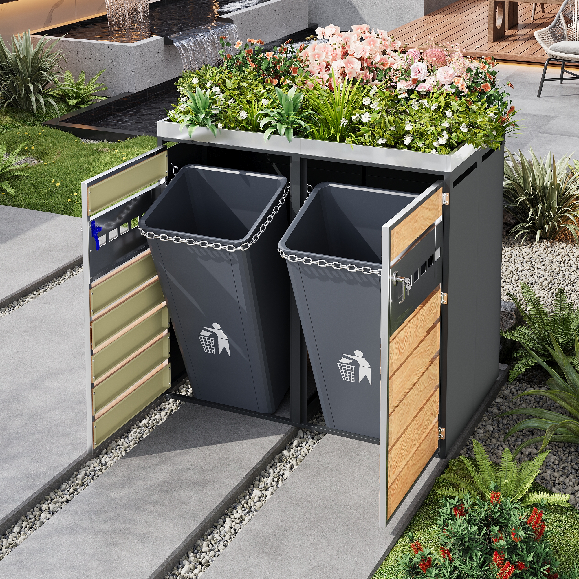 Product Name:Trash can storage box, lockable, two doors, planting area, with ventilation