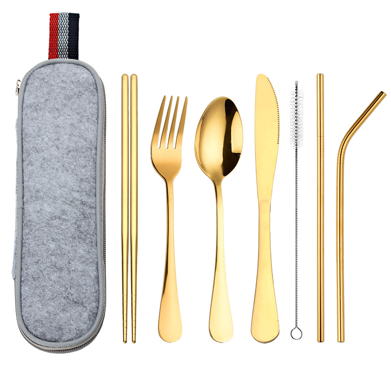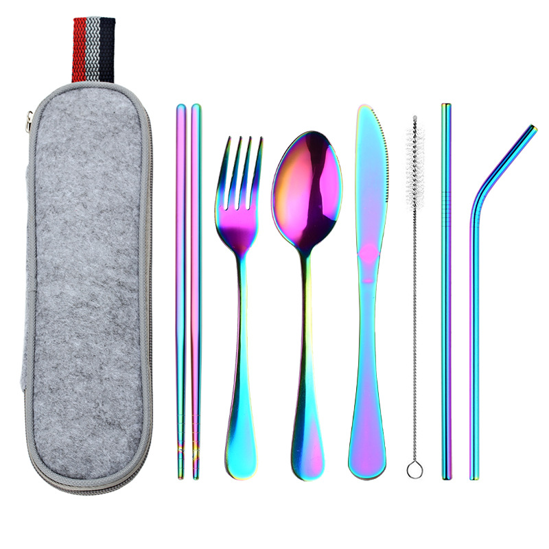 Specifications: Silver 8-piece set (gray meal bag), Gold 8-piece set (gray meal bag), Rose Gold 8-piece set (gray meal bag), Black 8-piece set (gray meal bag), Symphony 8-piece set (gray Meal bag), purple 8-piece set (gray meal bag), blue 8-piece set (gray meal bag), convenient tableware bag