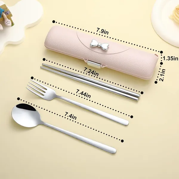 Travel Cutlery Set, 18/8 Stainless Steel Cutlery, Reusable Utensils Set With Case, Portable Silverware Lunch Box For Camping And Office