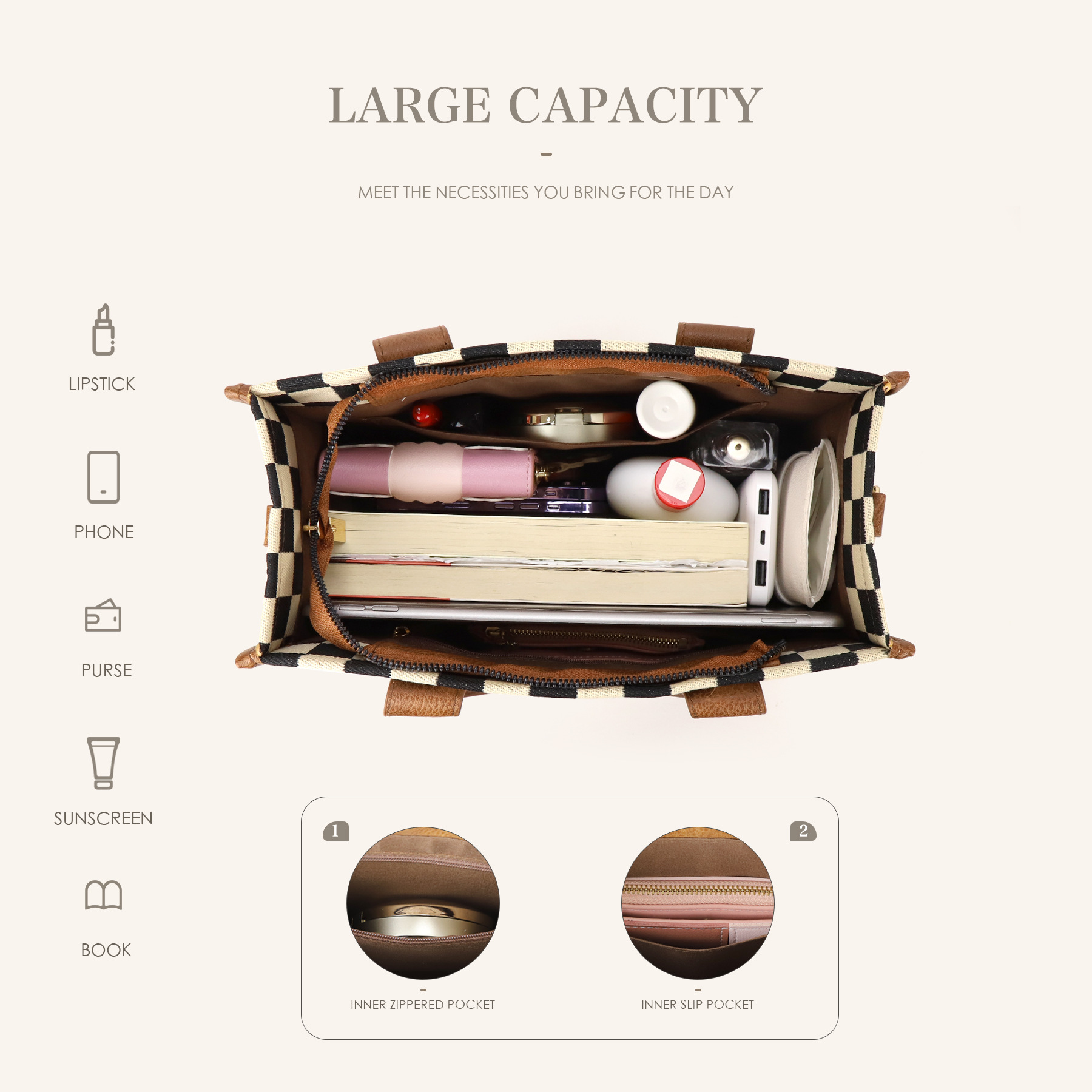 Color: with compartments pure brown (available in stock), pure plaid black (available in stock), with compartments double zipper-Brown (available in stock), double zipper-plaid black (available in stock), double zipper-Brown (in stock), double zipper-black (in stock)