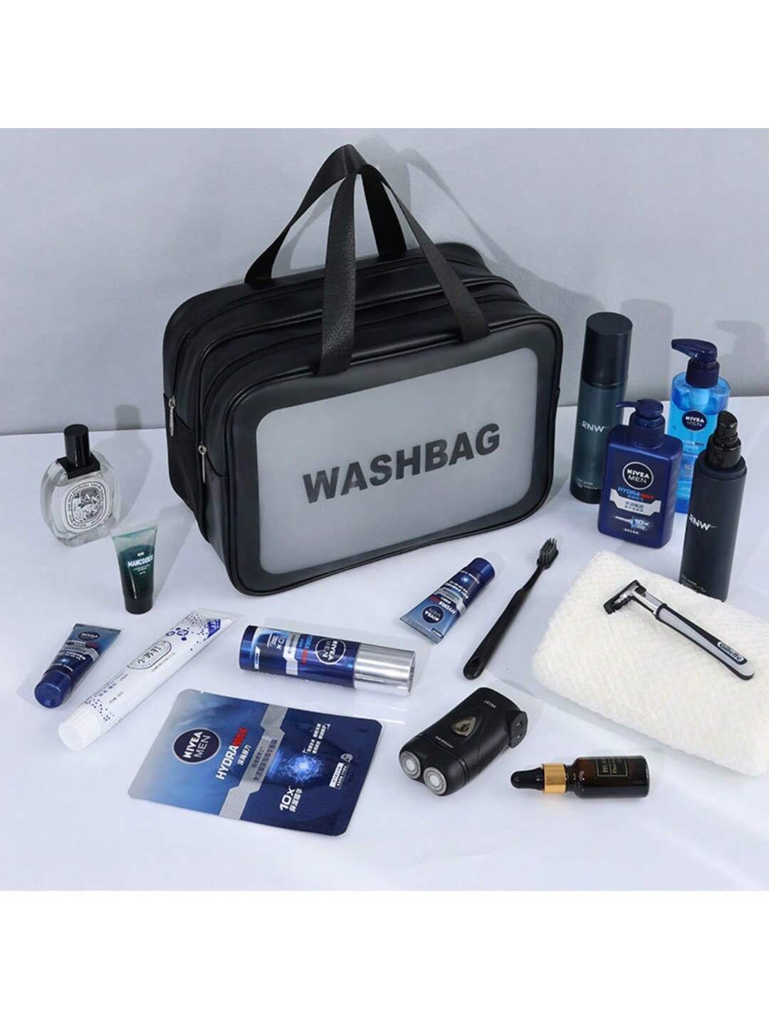 Dry wet separation men's grooming bag