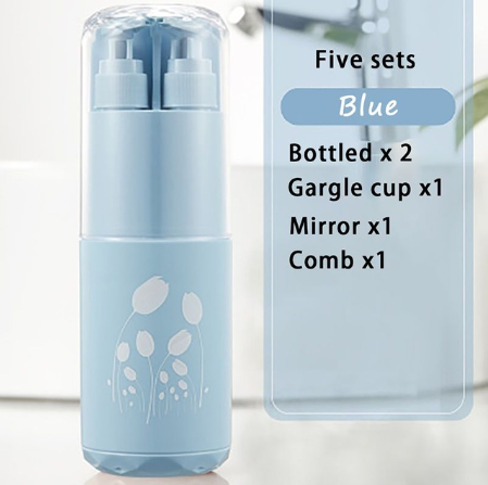 2.Five-piece set contains: bottled x2; mug, mirror, comb.