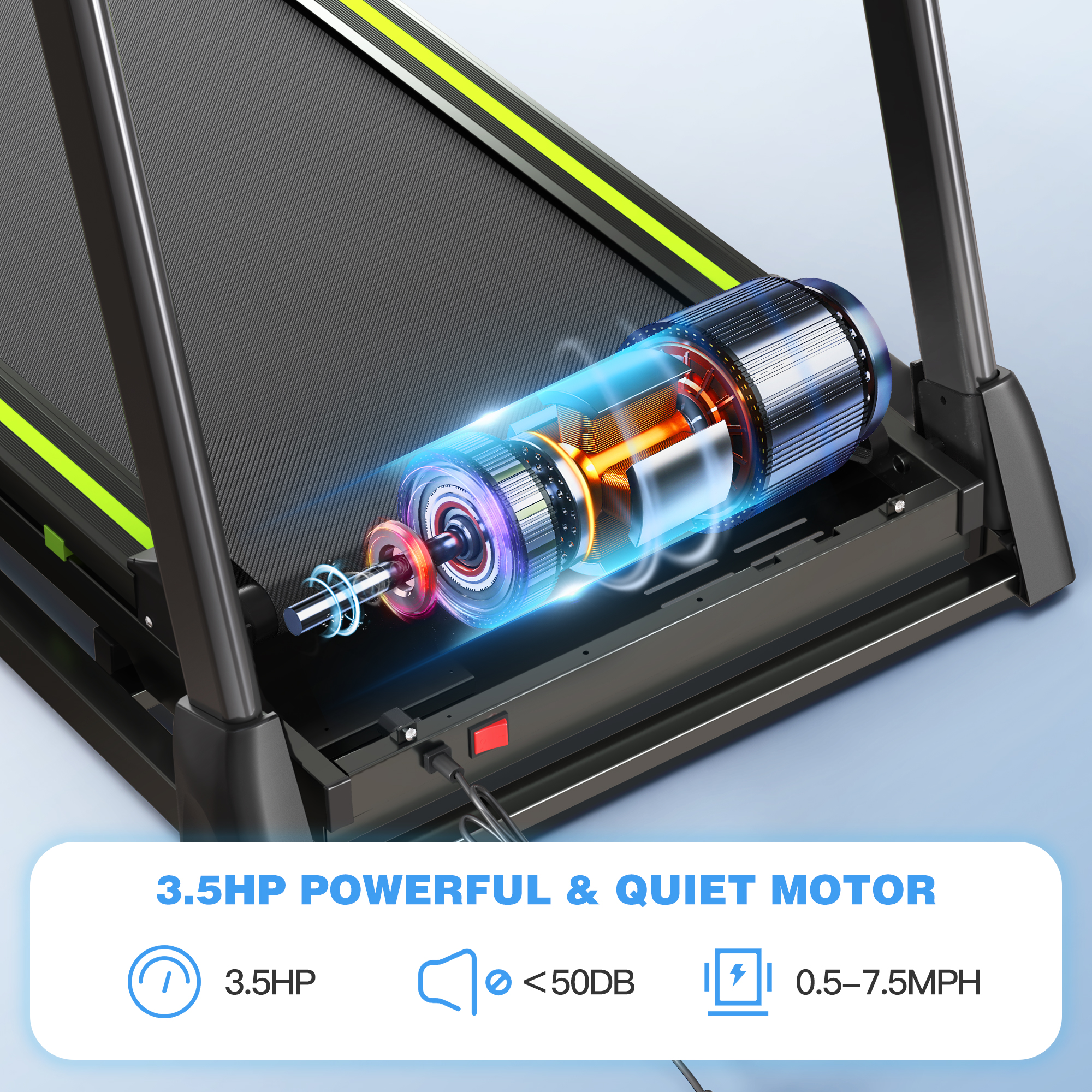 0.5-7.5mph/1-12KMH3.5HP3 Model1-12 ProgramsLED 1050*420mm2 cup holdersThe incline