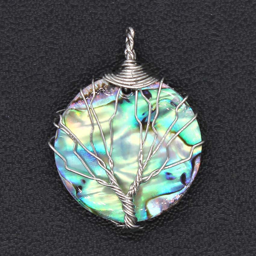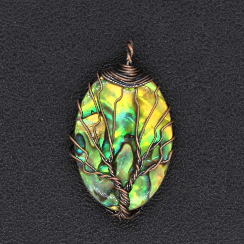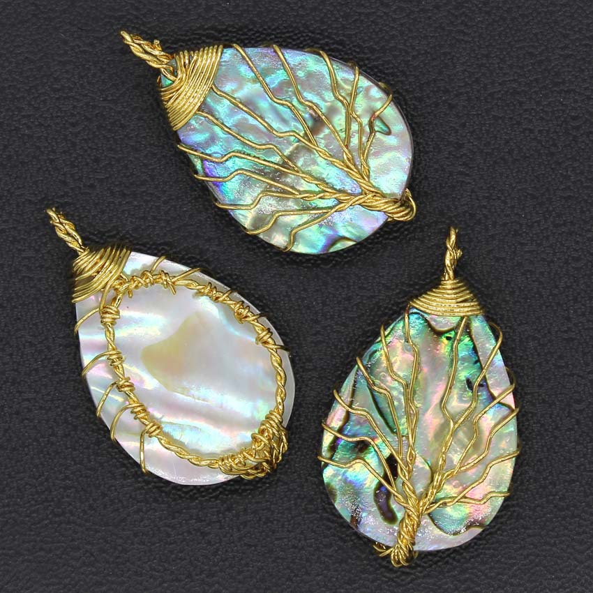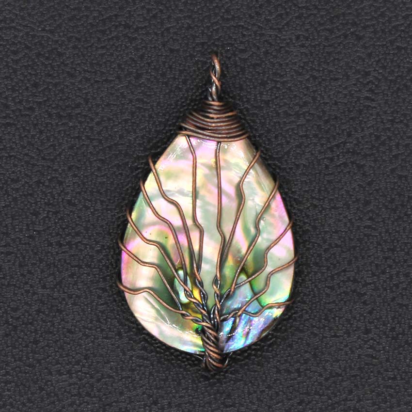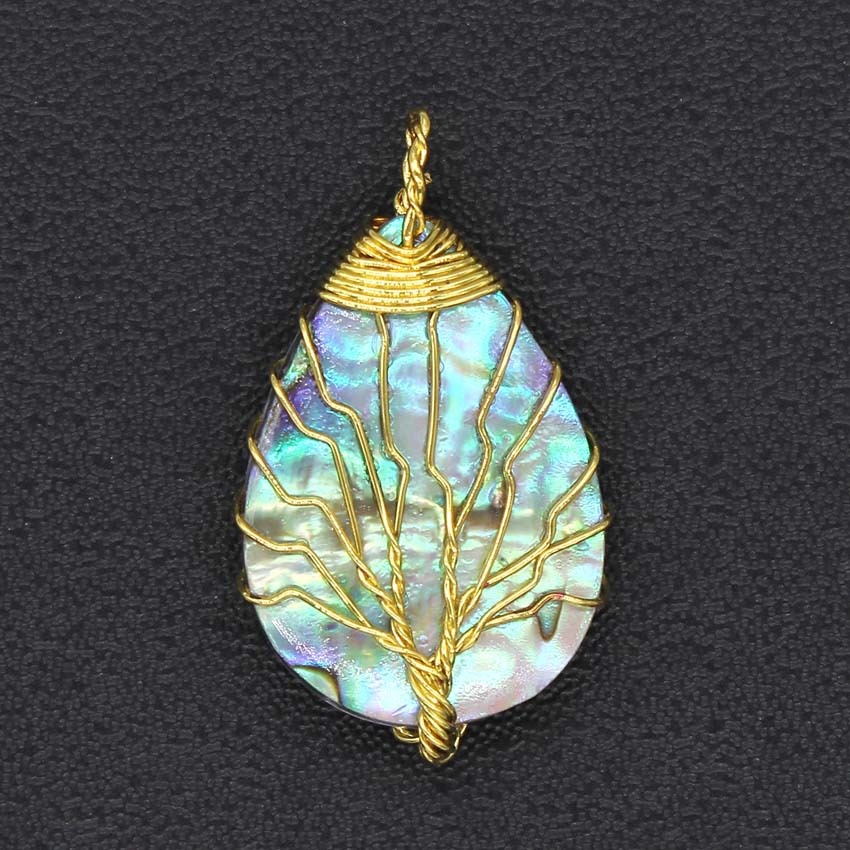 [Name]: Natural Abalone Shell Water Drop Pendant of Life Tree