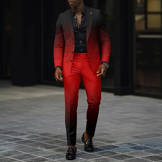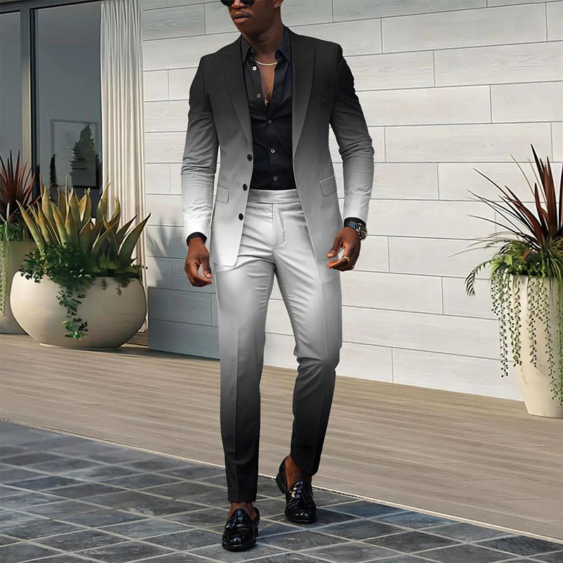 Trendy All-matching Men's High Quality Gradient Suit
