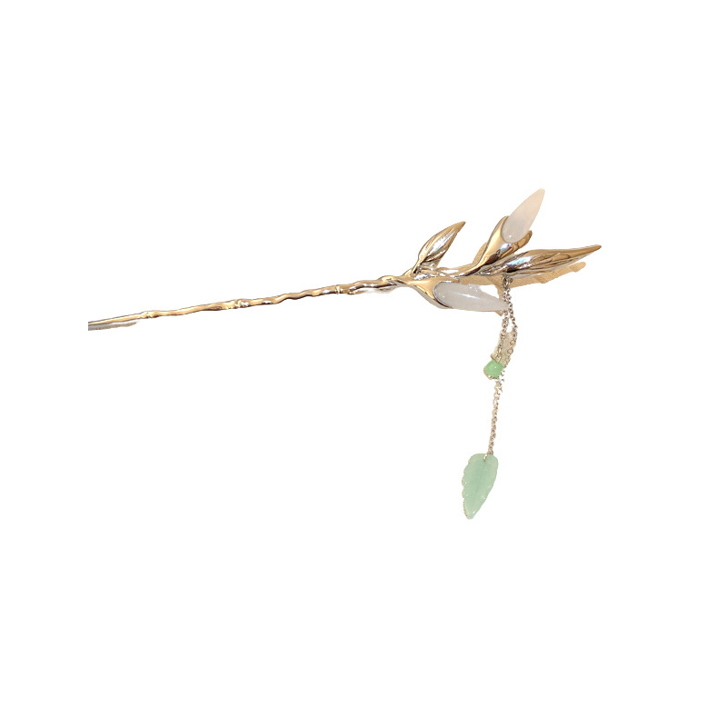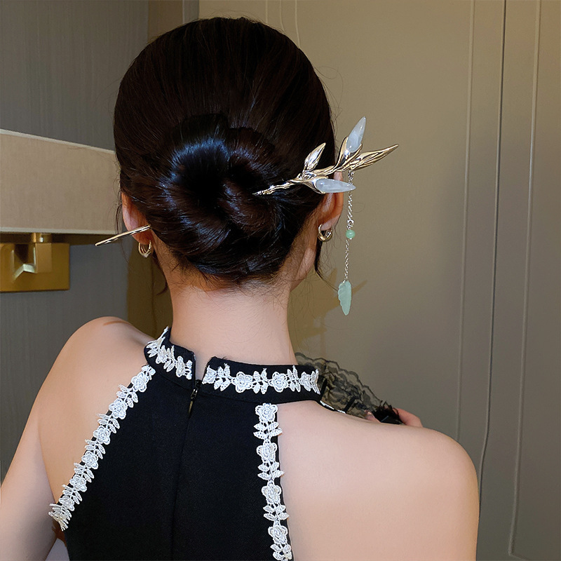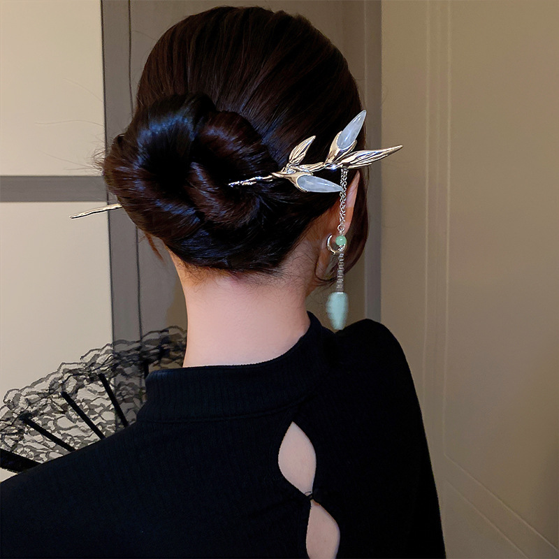 Trendy Alloy Hairpin With Leaf Tassels On The Back Of The Head