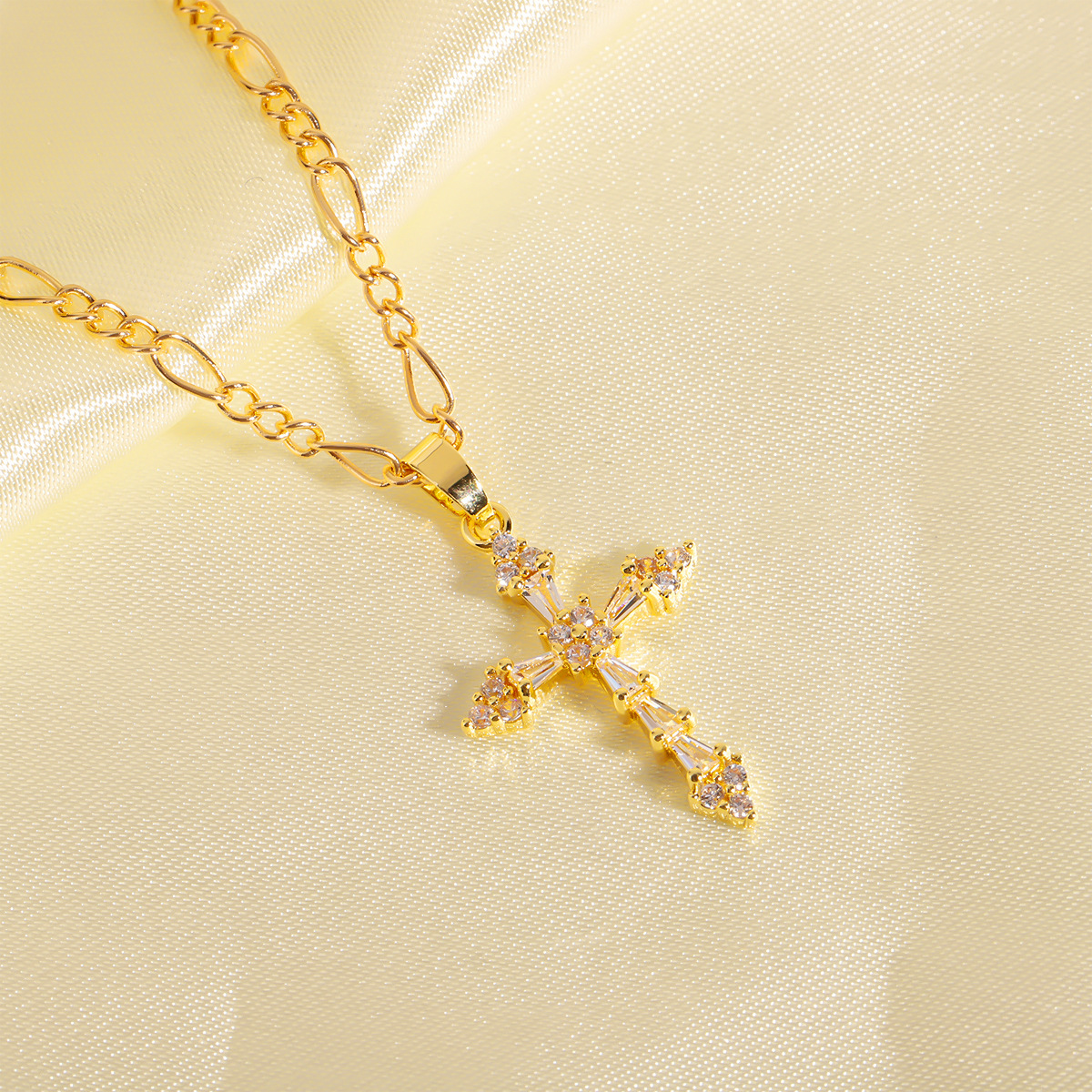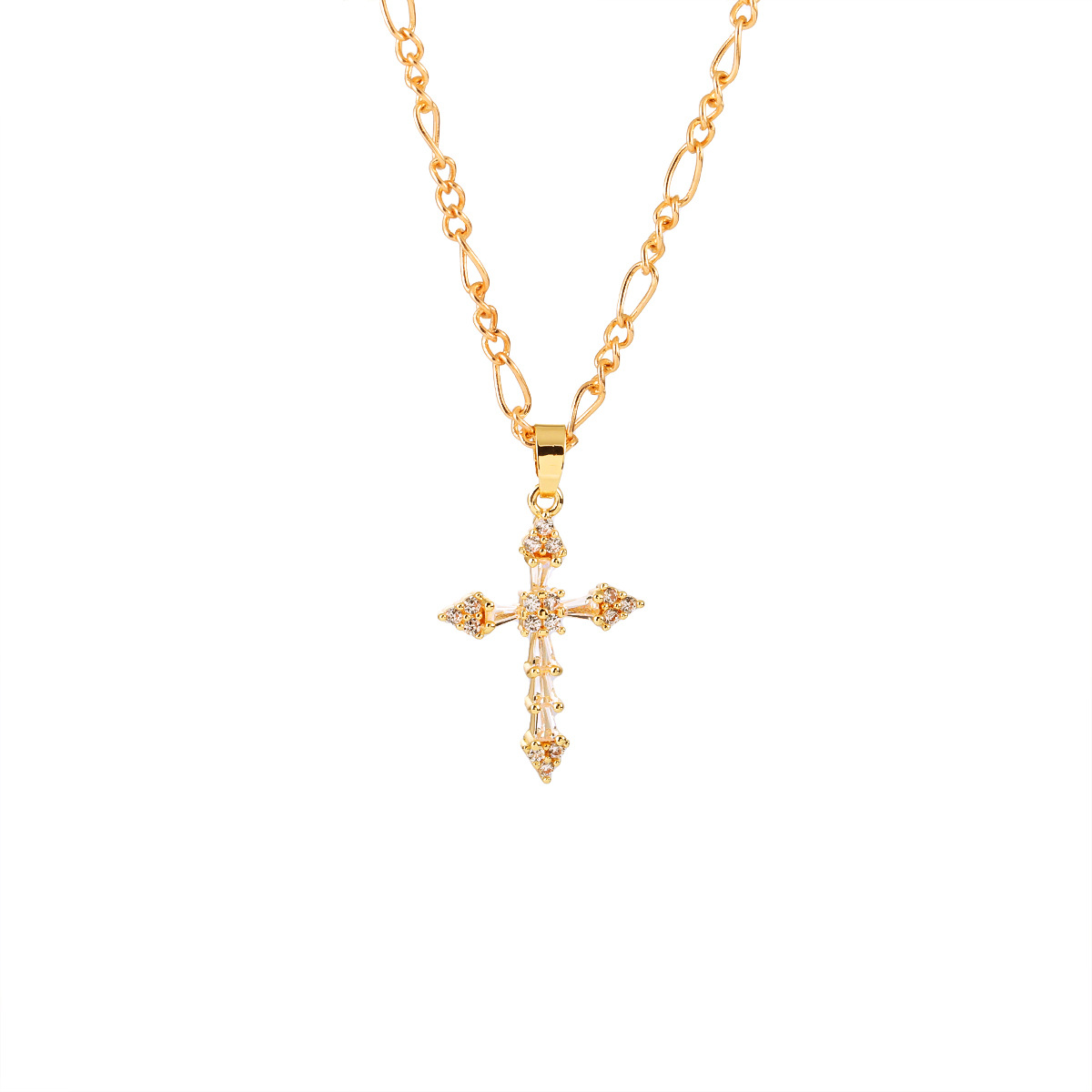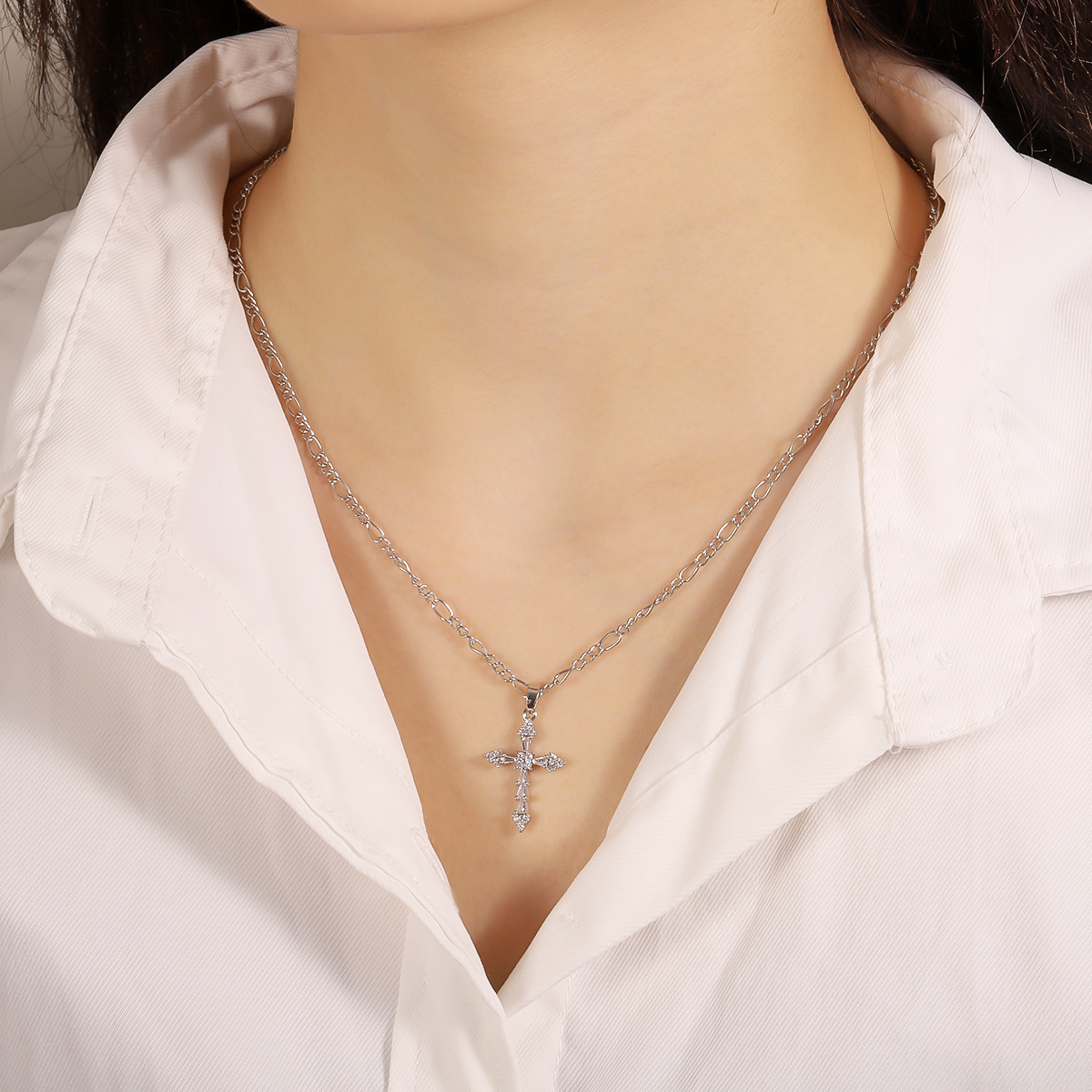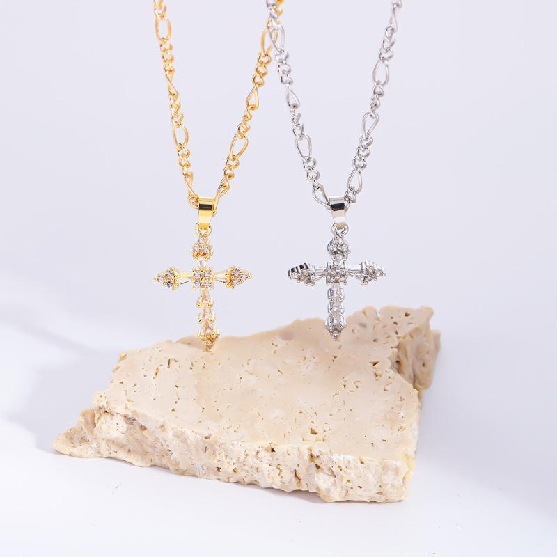 Trendy Copper Inlaid Zircon Cross Stainless Steel Necklace For Women, Fashion All-match Clavicle Chain Jewelry