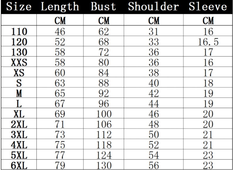 Size: XXS, XS, S, M, L, XL, 2XL, 3XL, 4XL