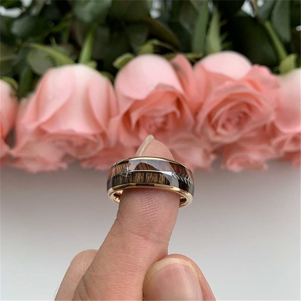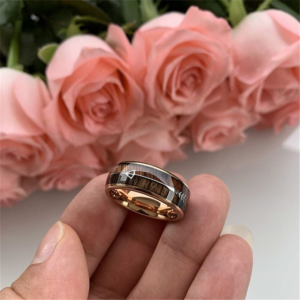 Trendy Fashion Rose Gold Arrow Wood Grain Ring