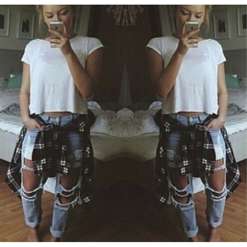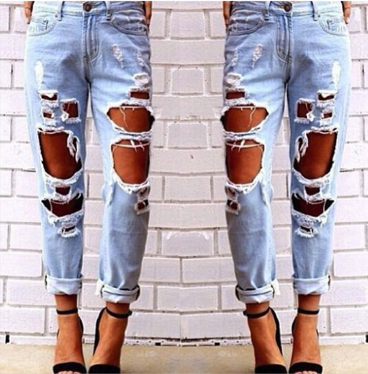 Europe and the United States loose wild sexy exaggerated big hole boyfriend jeans