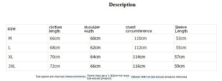 1. Asian sizes are 1 to 2 sizes smaller than European and American people. Choose the larger size if your size between two sizes. Please allow 2-3cm differences due to manual measurement. 2. Please check the size chart carefully before you buy the item, if you don't know how to choose size, please contact our customer service. 3.As you know, the different computers display colors differently, the color of the actual item may vary slightly from the following images.